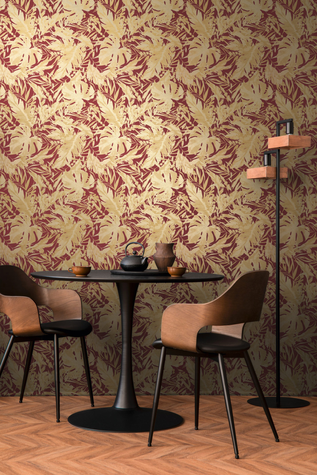 Színvilág : parázsló bordó és fényűző arany tónus fémes hatás