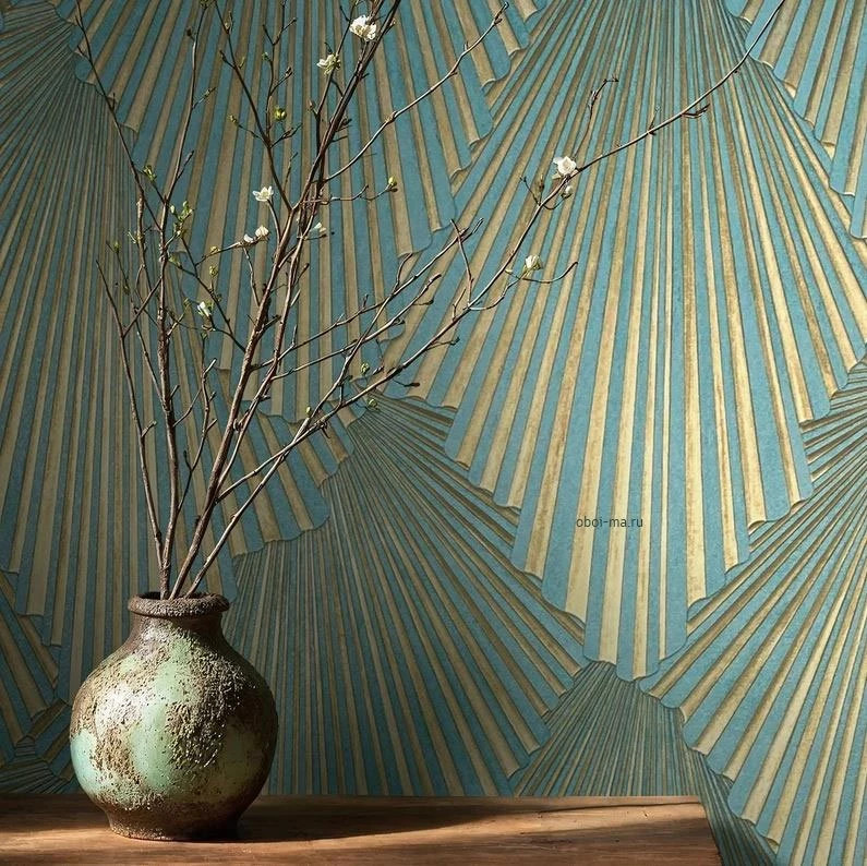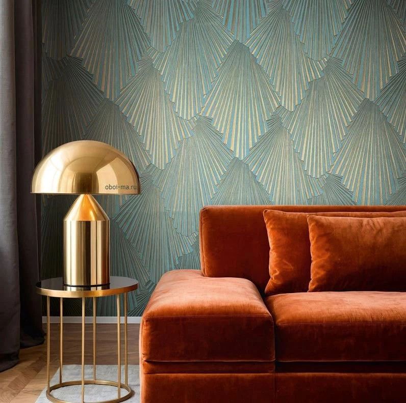tapéta kifinomult geometrikus mintáival és mély türkiz-arany árnyalataival