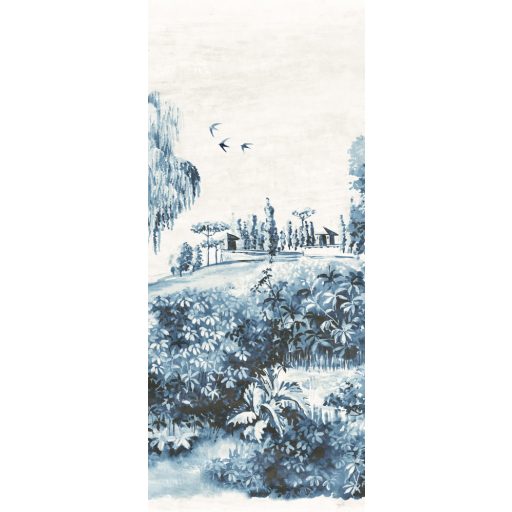 idilli tájat ábrázol. A fák pompásan nőnek a falon és csodálatos madarak