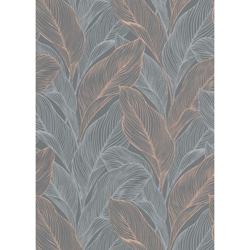 Grafikus megjelenítésű erezett csillogó levélminta sötétszürke ezüstszürke és vörösesbarna tónus fémes hatás tapéta