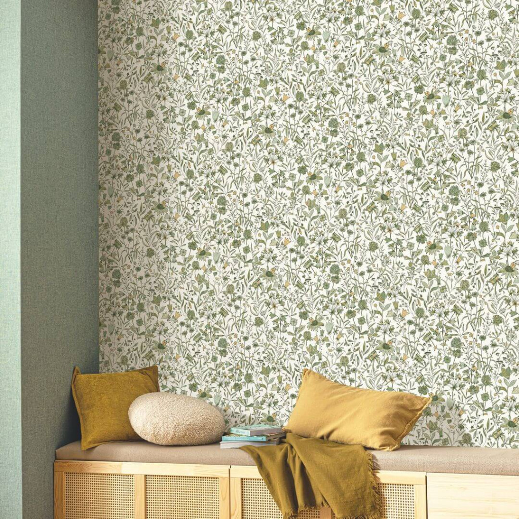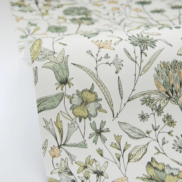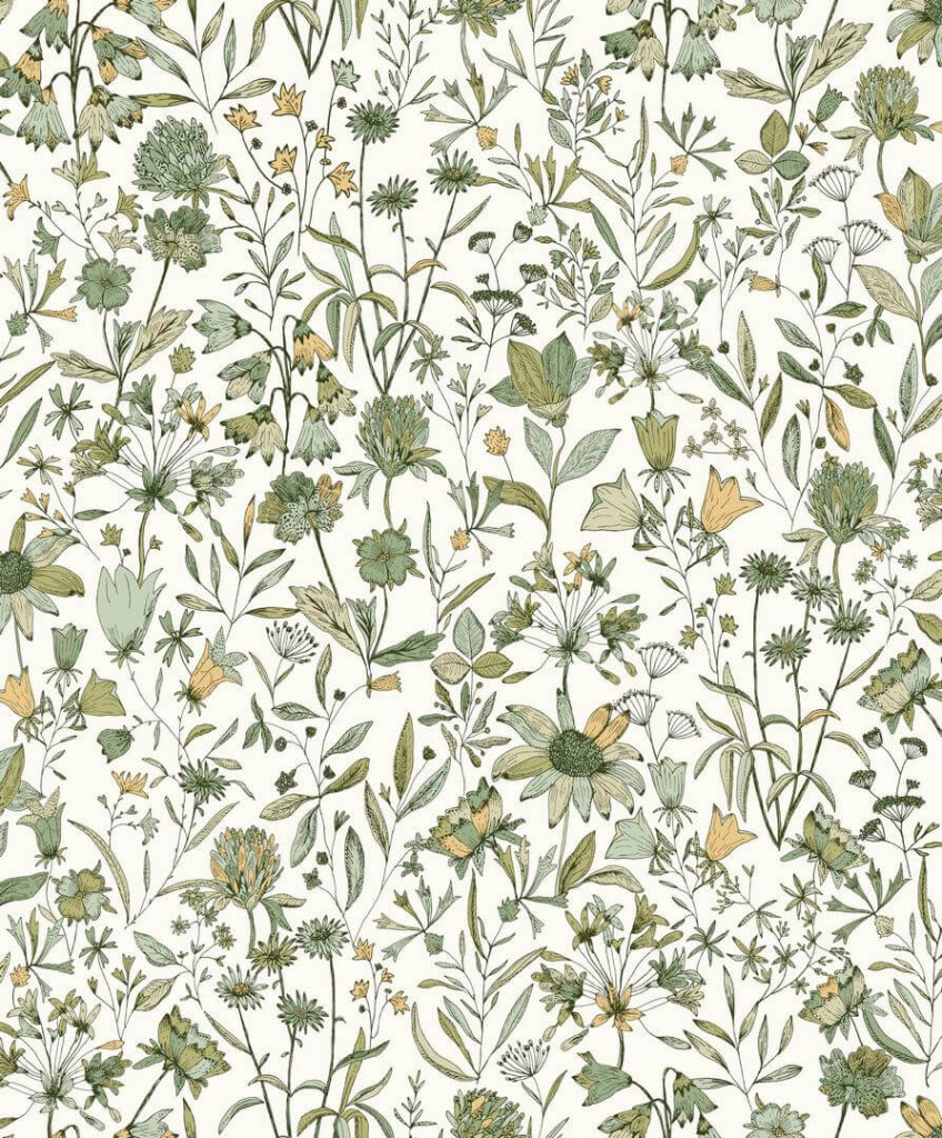 alapon zöld és halvány aranysárga árnyalatú florális univerzum botanikus