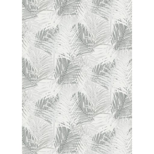 Egymást átható levelek stilizált grafikus mintája fehér krémszürke és sötétszürke tónus csillogó mintaelemek tapéta
