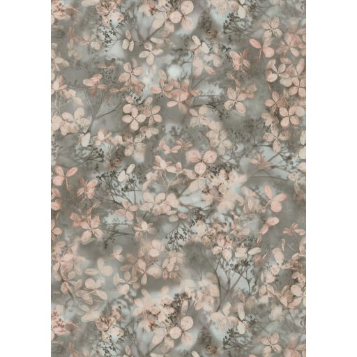 Finom ágakon nyíló varázslatos bodzavirágok a reggeli harmatban szürkésbarna szürke rózsaszín és zöldeskék tónus tapéta