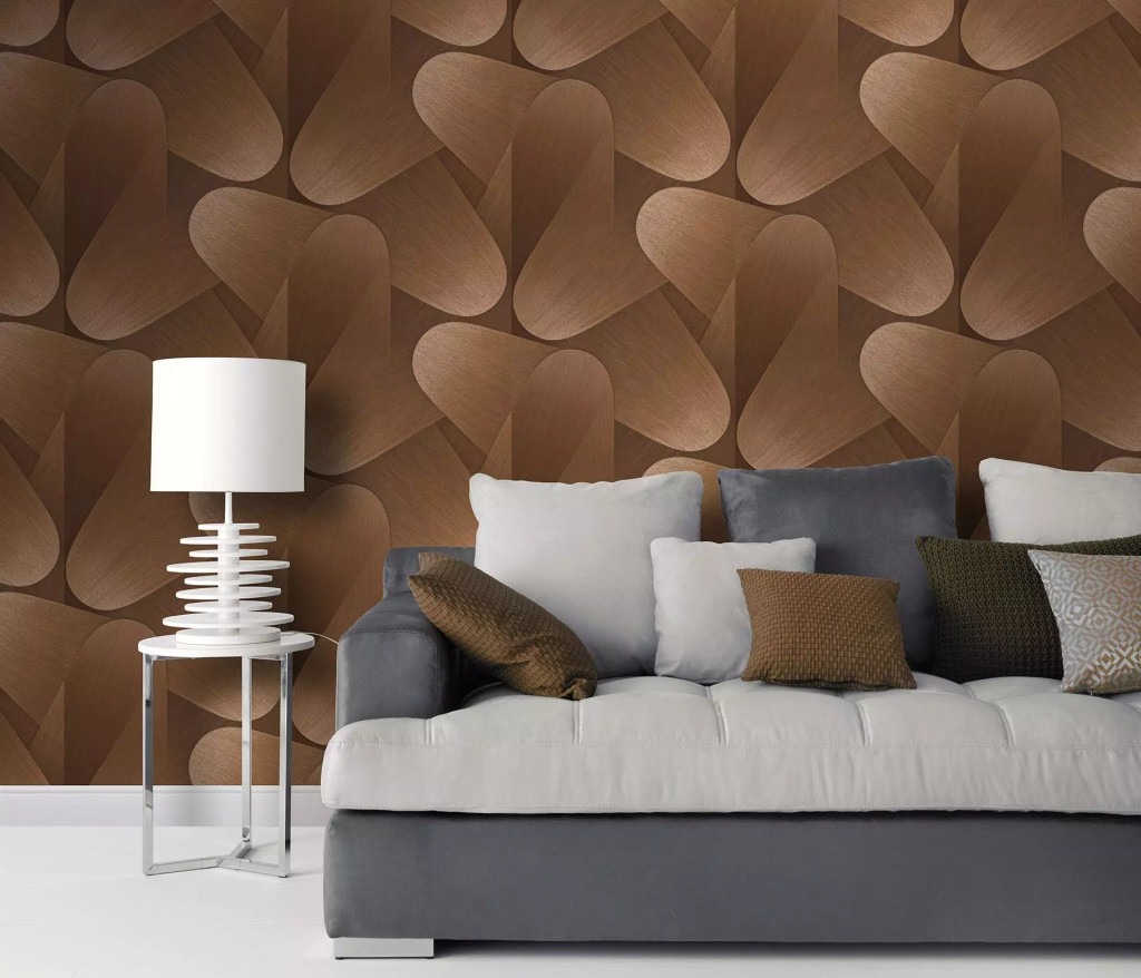 Tipp : A bronzos-mogyoróbarna árnyalatokban játszó modern geometrikus tapéta