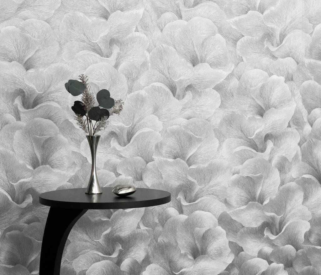 Mintázat : Finoman hullámzó és lágyan fodrozódó selymes stilizált virágszirmok