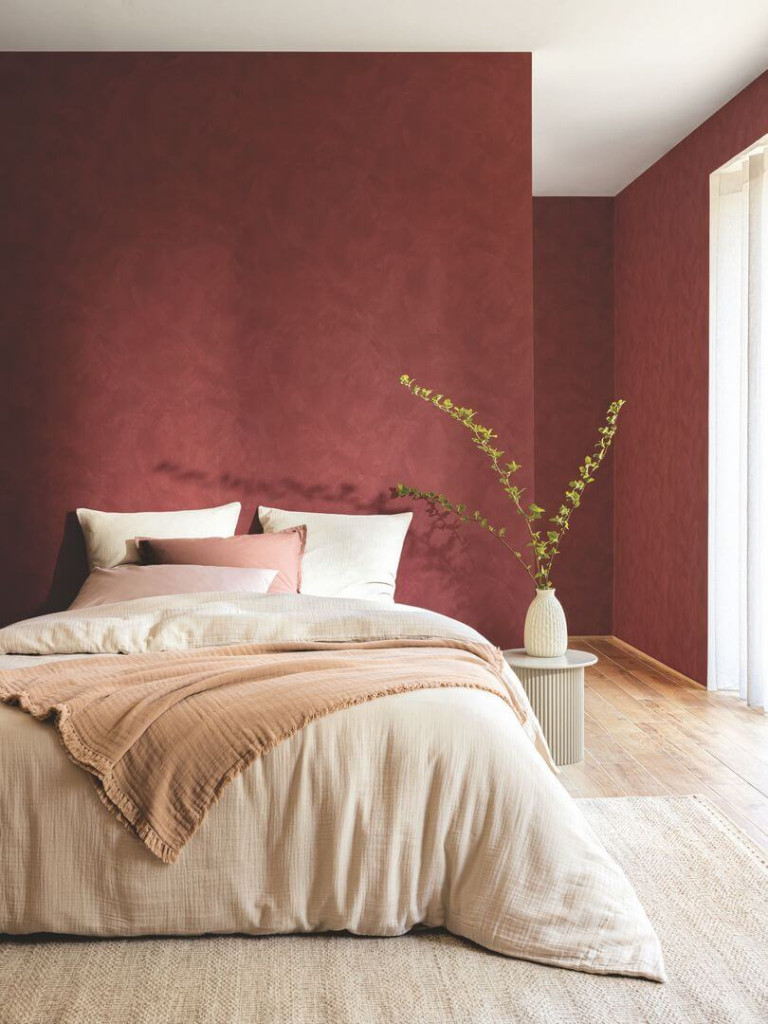 a falfelületre - ez a földes bordó árnyalat azonnal intim kuckóvá varázsolja