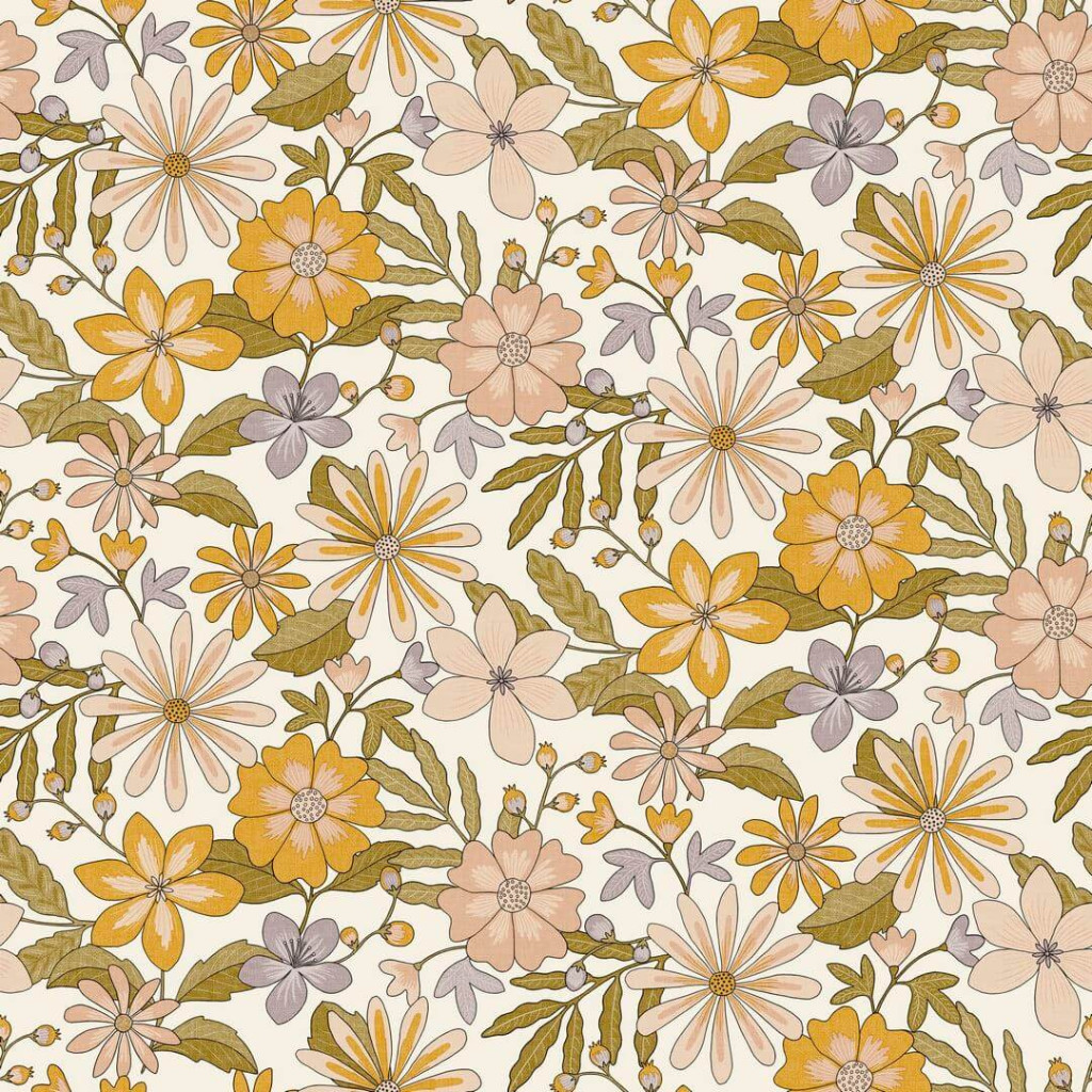 és levendula-lila virágok a tejszín alapon úgy ringatóznak az olívazöld levelek