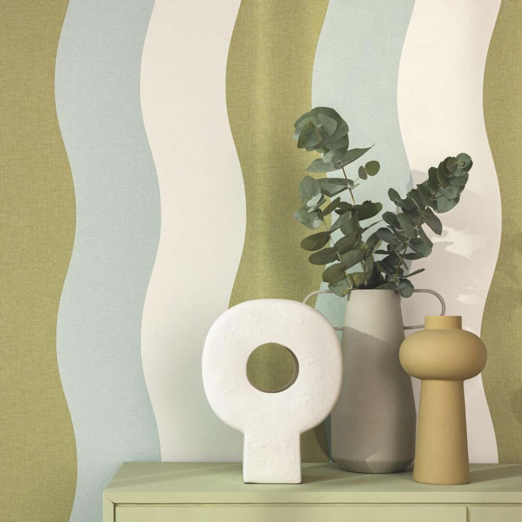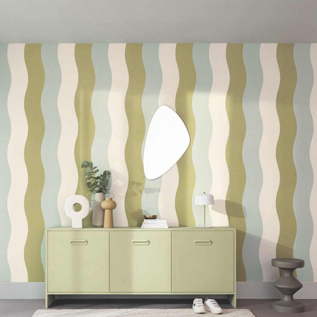 sávok ritmikus tánca optikai illúziót kelt. Egyetlen falra helyezve bátor dizájnbombát dob
