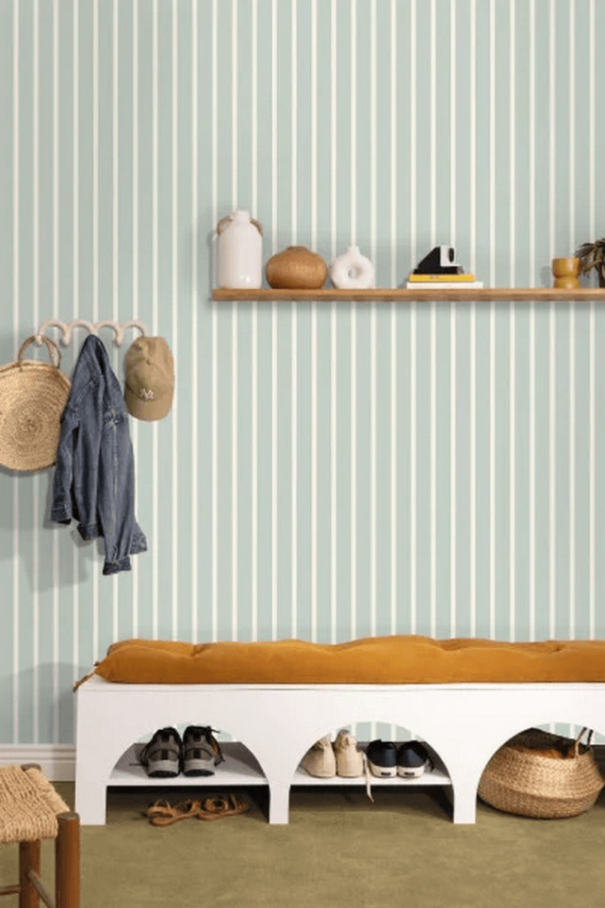 sétányon! Halványkék alapon krémszínű csíkok sorakoznak, mintha a