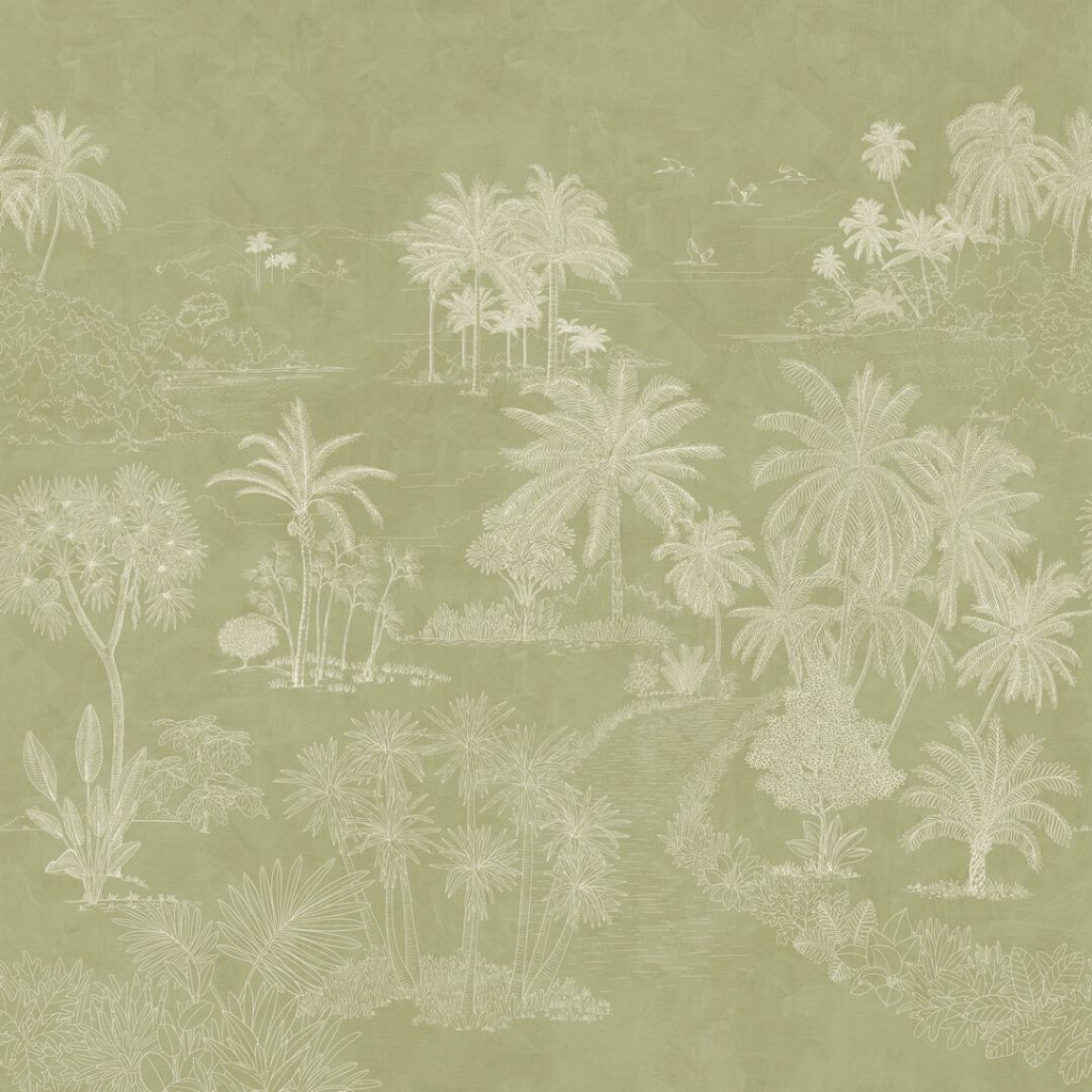 a dzsungel halványzöld teán áztatná magát. Pasztell olajzöld alapon fehér