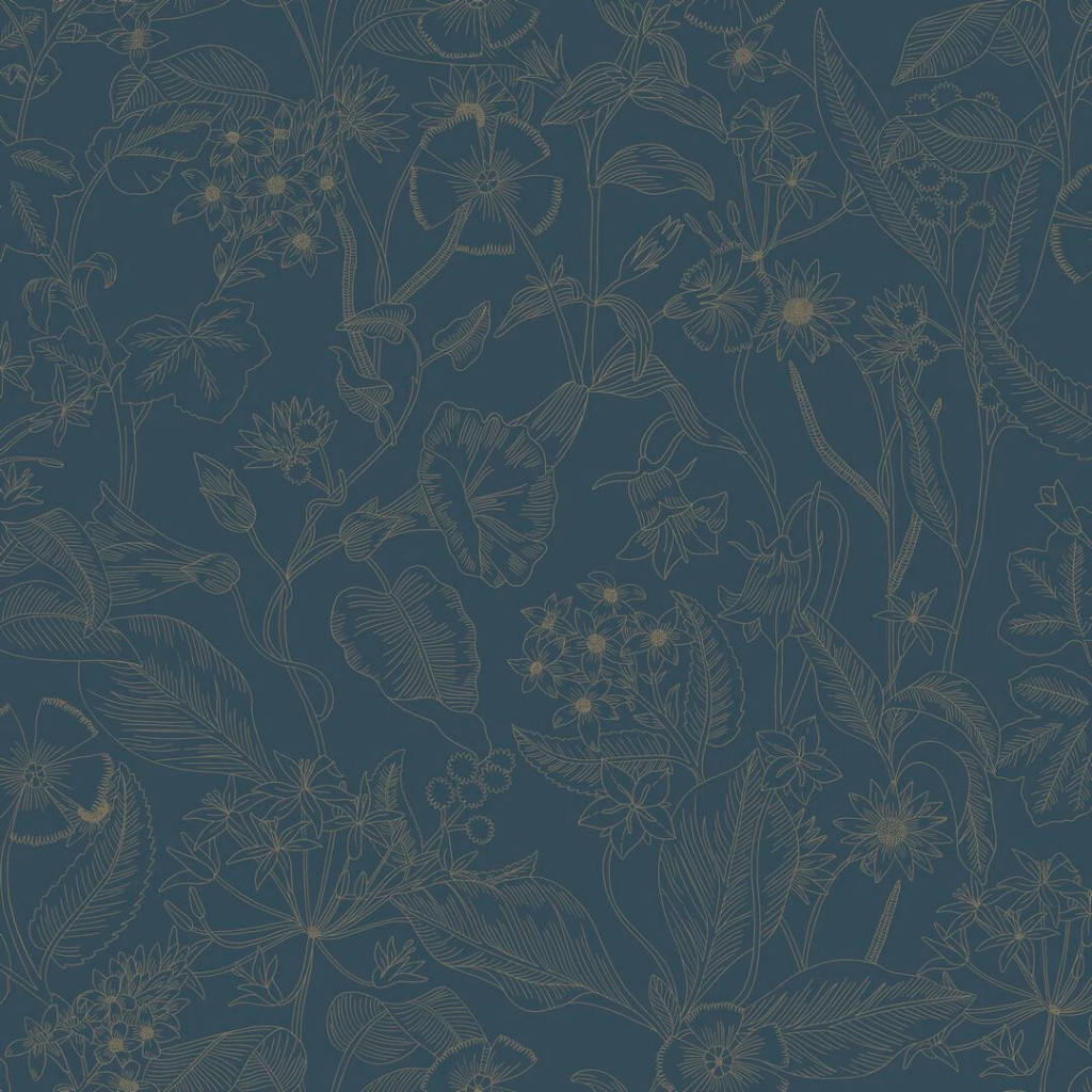 suttogása. A mélykék háttér előtt aranyló vonalak rajzolják ki a virágok