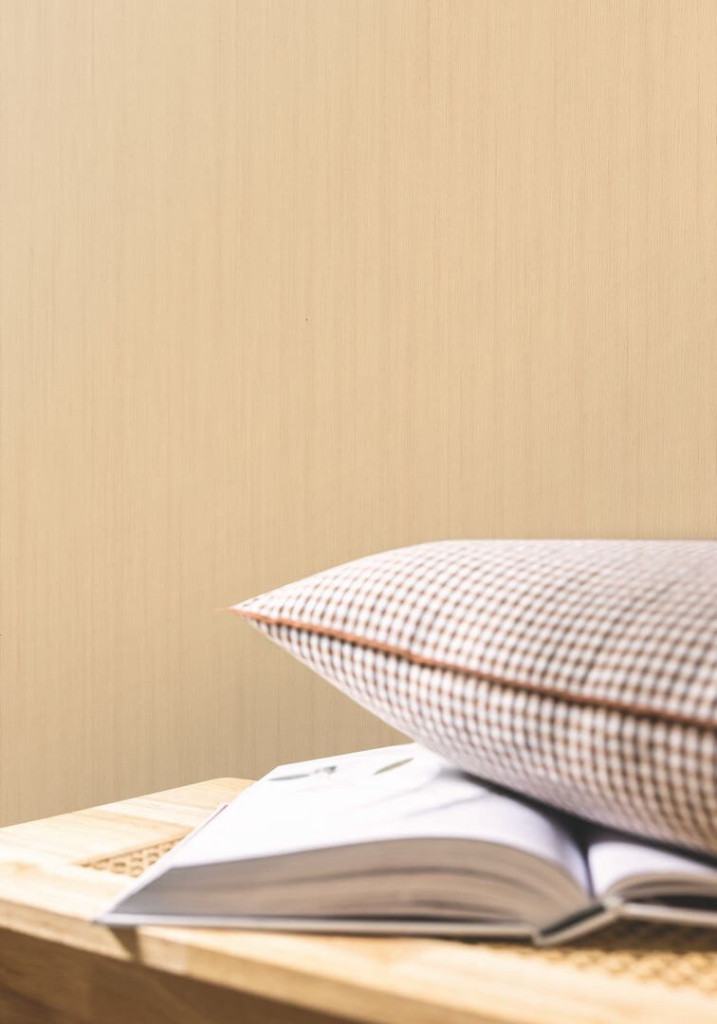 a finom famintázat rendezett ritmust és optikai magasságot ad a falaknak. A tónus barátságos