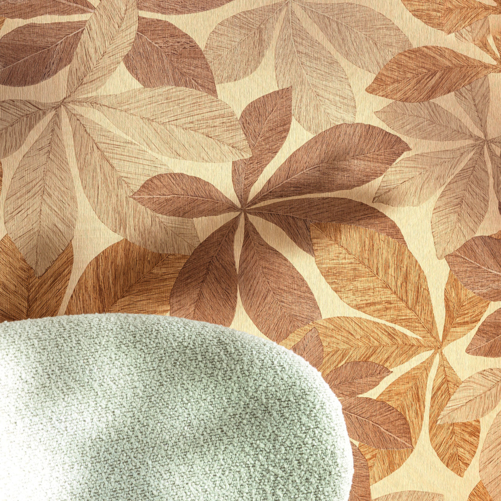 Tipp : A nagy finoman erezett levelek motívuma meleg bézs és barna árnyalatokban