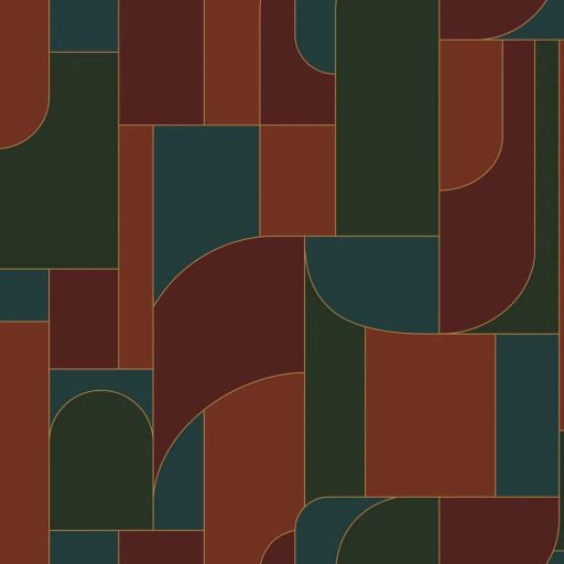 vonalak elegánsan tagolják a tüzes és földszíneket. Ez a felület a modern Bauhaus