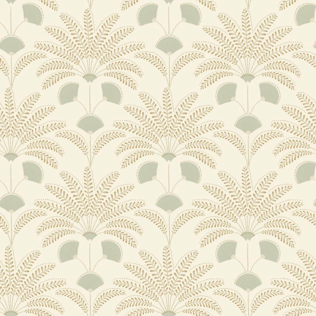 részletek rajzolnak elegáns ritmust krémes alapon, ahol a szürkészöld és aranybarna árnyalatok