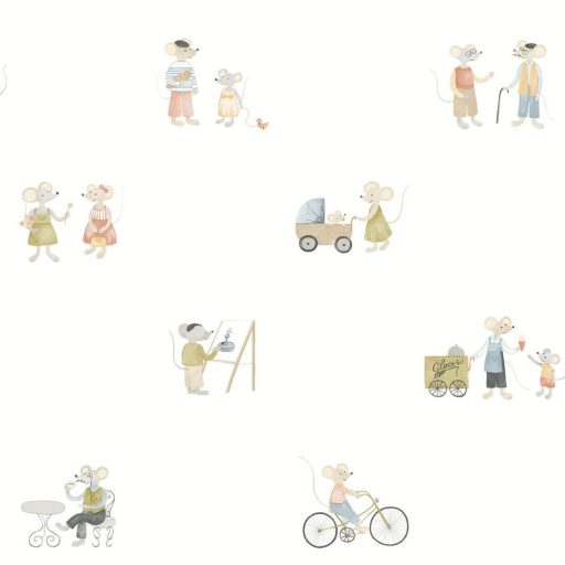 egércsaládot ábrázol. Itt az egerek sétálnak, beszélgetnek, kávéznak,
