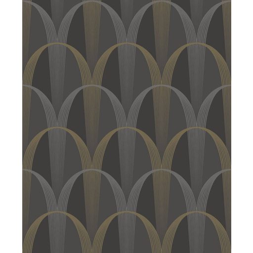 A minta merész ívekkel táncolja körül a teret. faszénfekete és arany árnyalatok