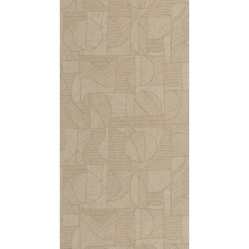 lenbézs alapon bontakozik ki. A geometrikus formák és íves vonalak harmonikus táncot