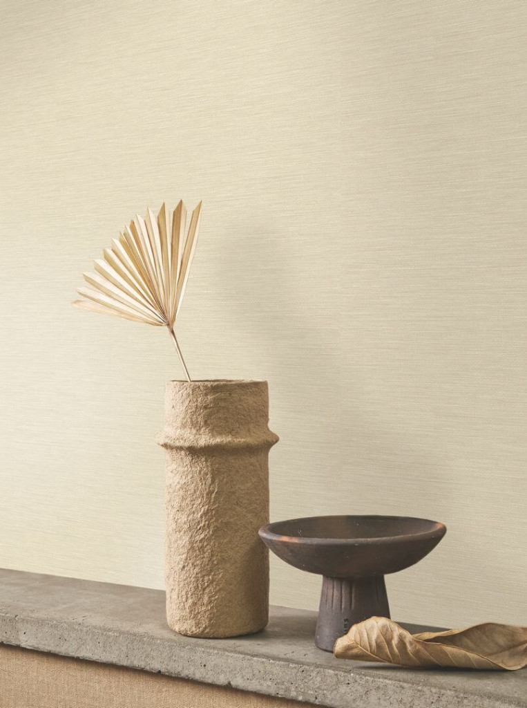 finoman árnyalt homokszínű tapéta amely úgy utánozza a szalmafonatot