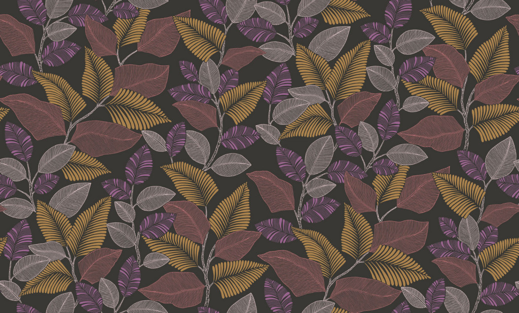 Mintázat : Brazil esőerdő lombkoronája grafikus levélmotívum formájában símul a falra