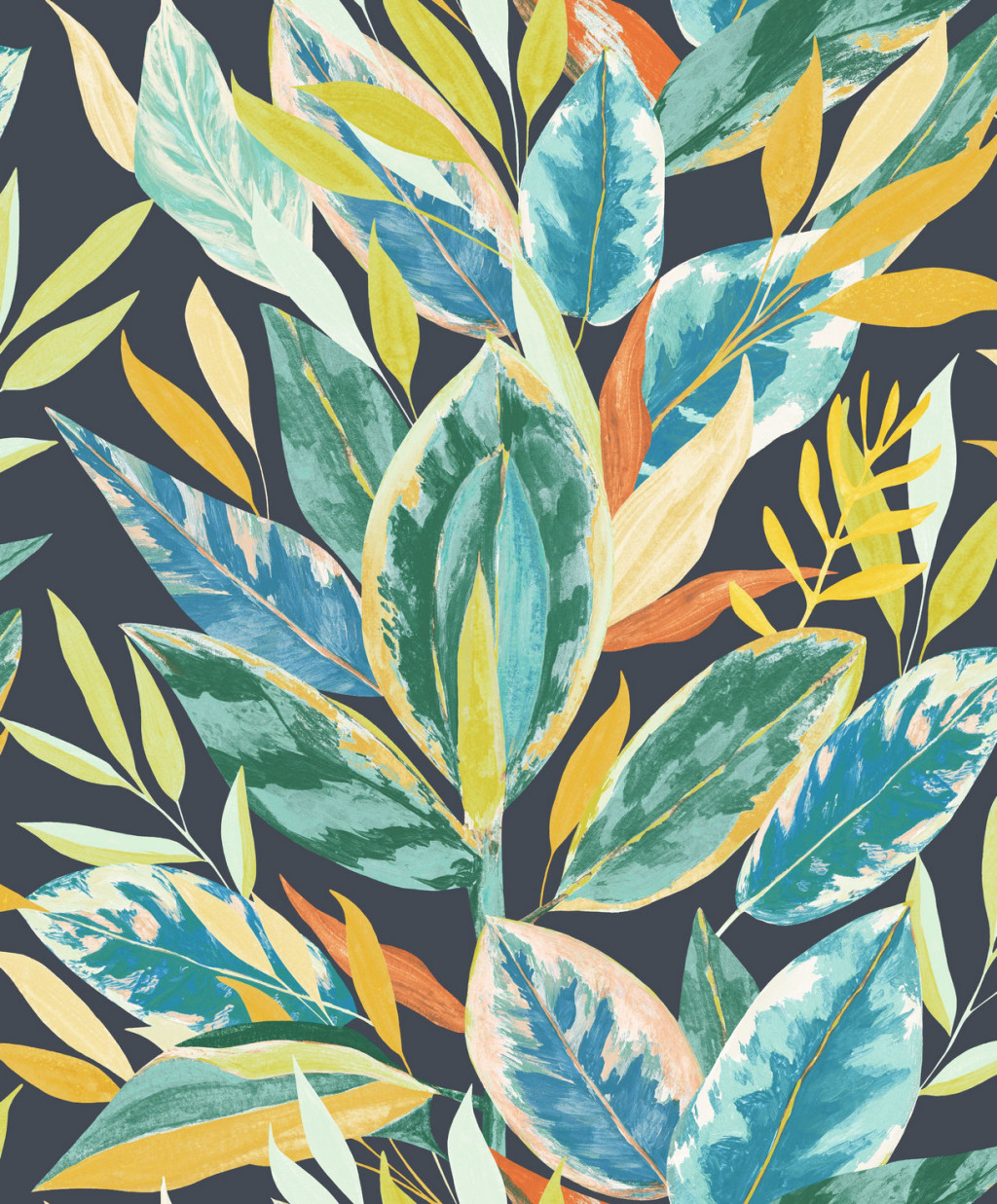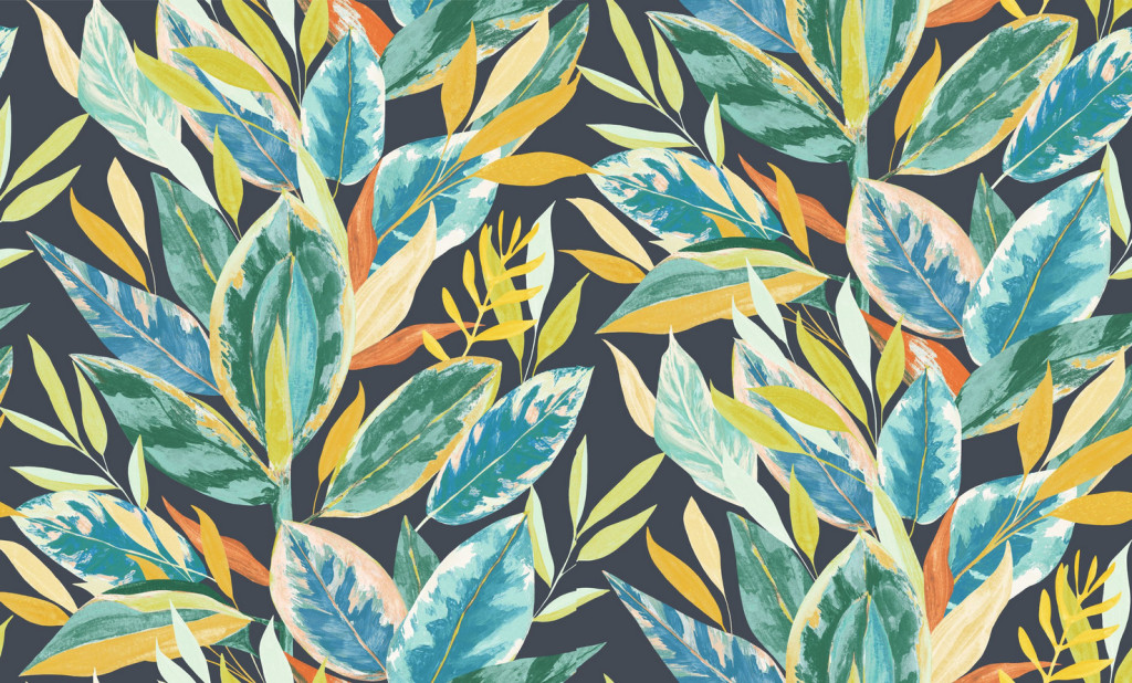 Tipp : Mély tintakék háttéren kibontakozó trópusi lombozat, ahol a digitális nyomtatás