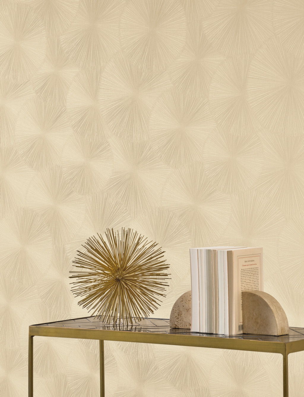 Dinamikus a nap sugaraira emlékeztető grafikus minta homokszín és bézs tónus finom mintafény tapéta