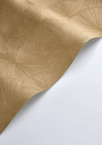 Dinamikus a nap sugaraira emlékeztető grafikus minta aranybarna és arany tónus finom mintafény tapéta