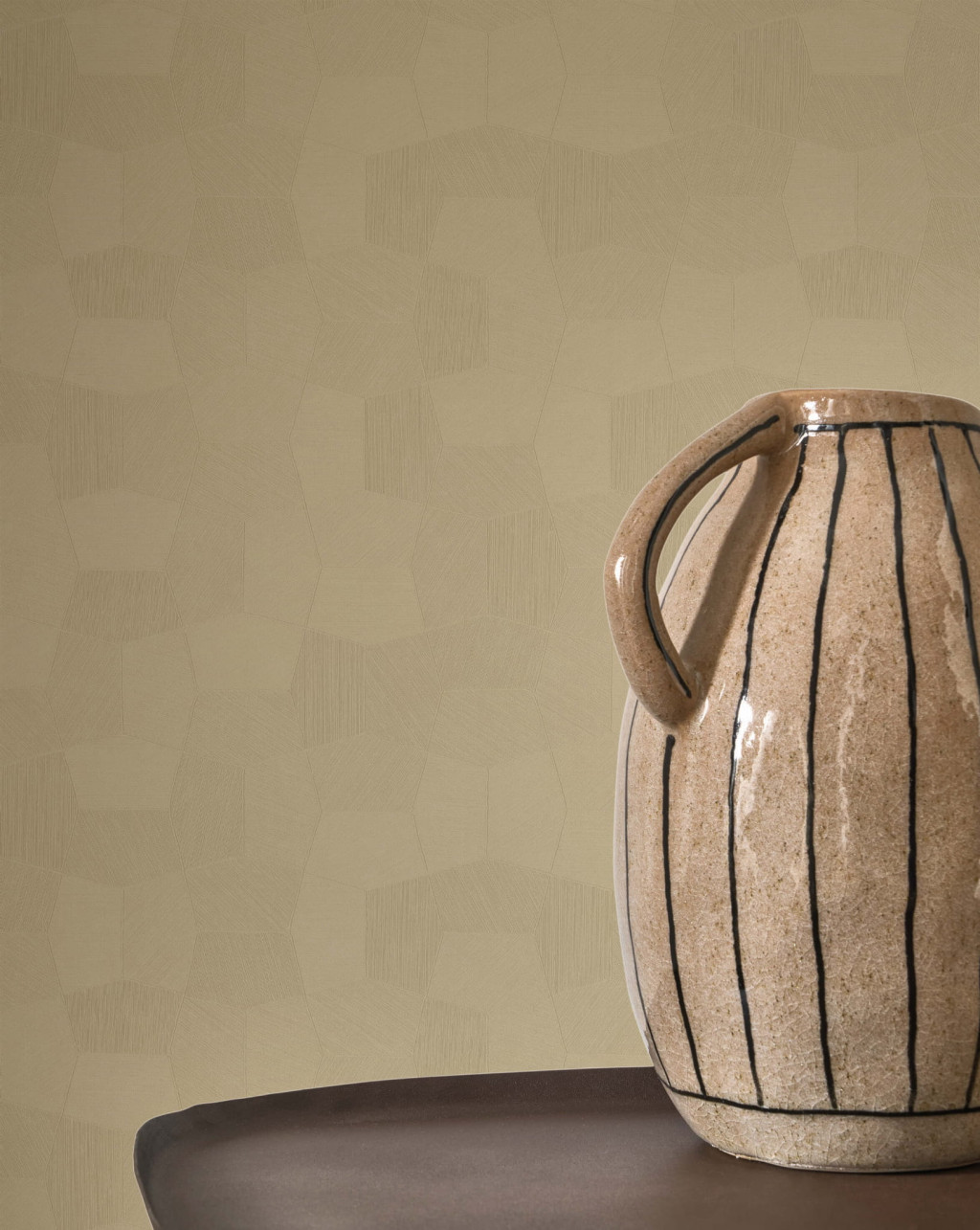 Holdtájak ihlette geometriai mintázat - szabálytalan alakzatok különböző irányú vonalak homokszín vajkrém és karamell tónus tapéta