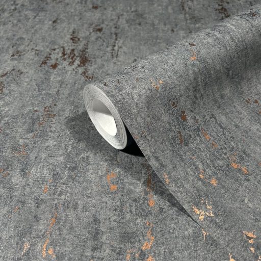 Loft stílusú fémes elemekkel díszített beton mintázat szürke grafitszürke és rézszín tónus tapéta