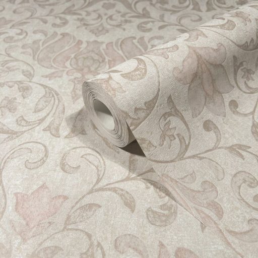 Damaszt hatású klasszikus szépségű és mintázatú Vintage dekorminta krém világosbézs bézs és rózsaszín tónus tapéta