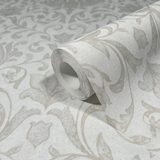 Damaszt hatású klasszikus szépségű és mintázatú Vintage dekorminta krémfehér krém és ecru tónus tapéta