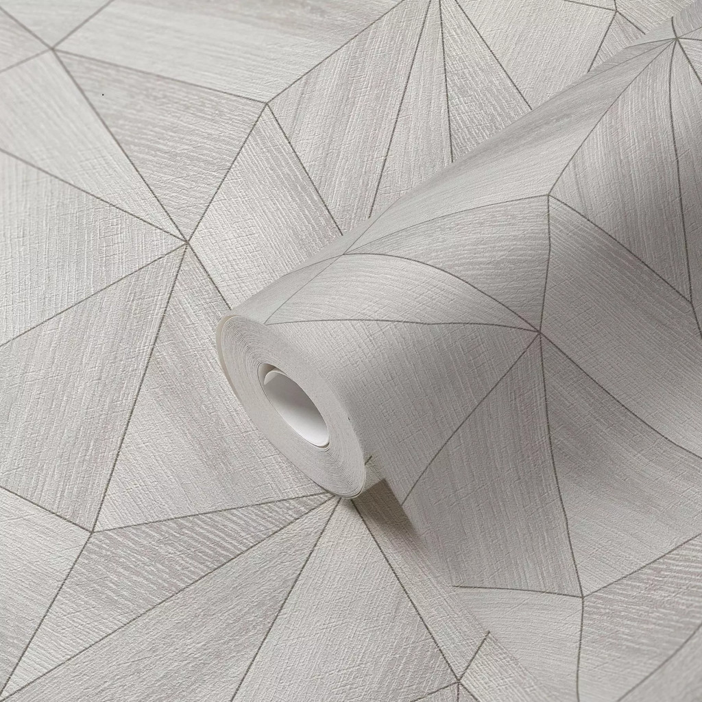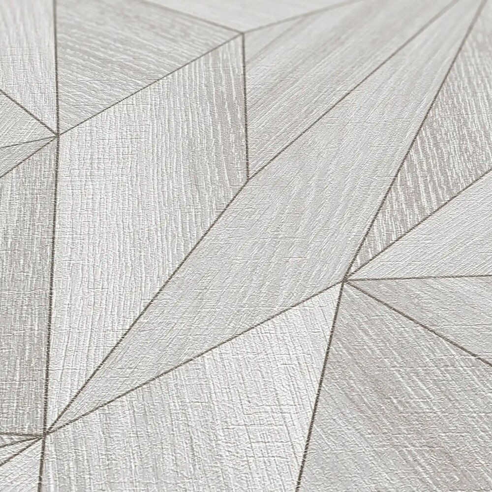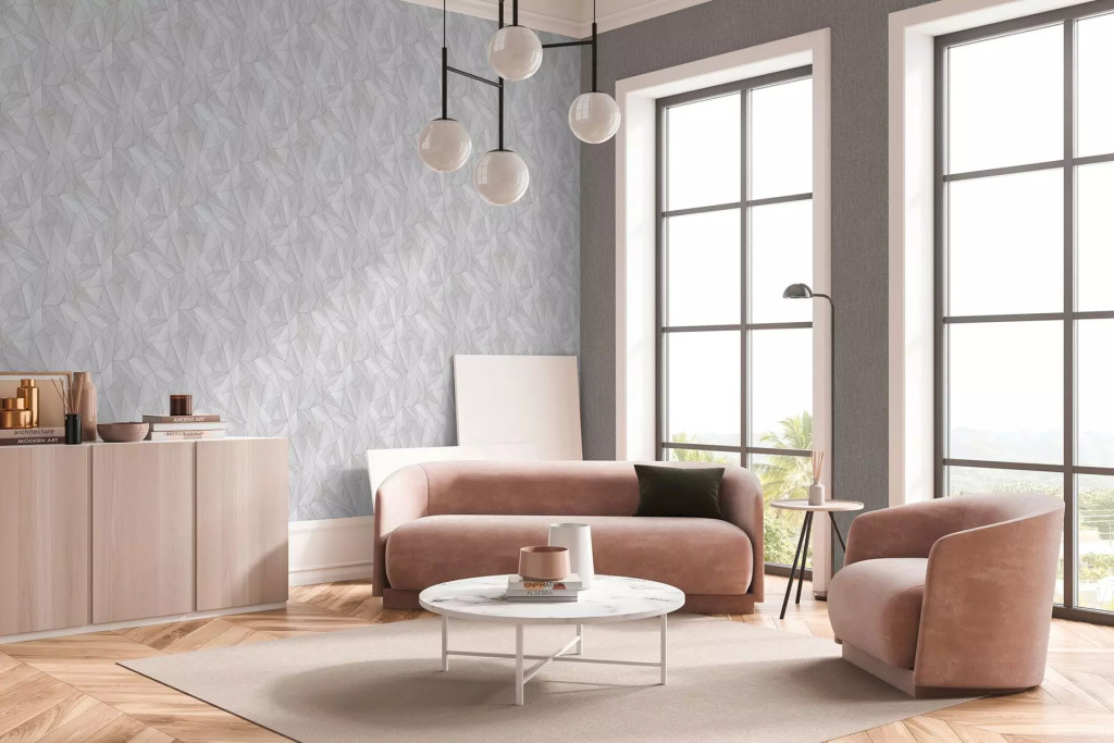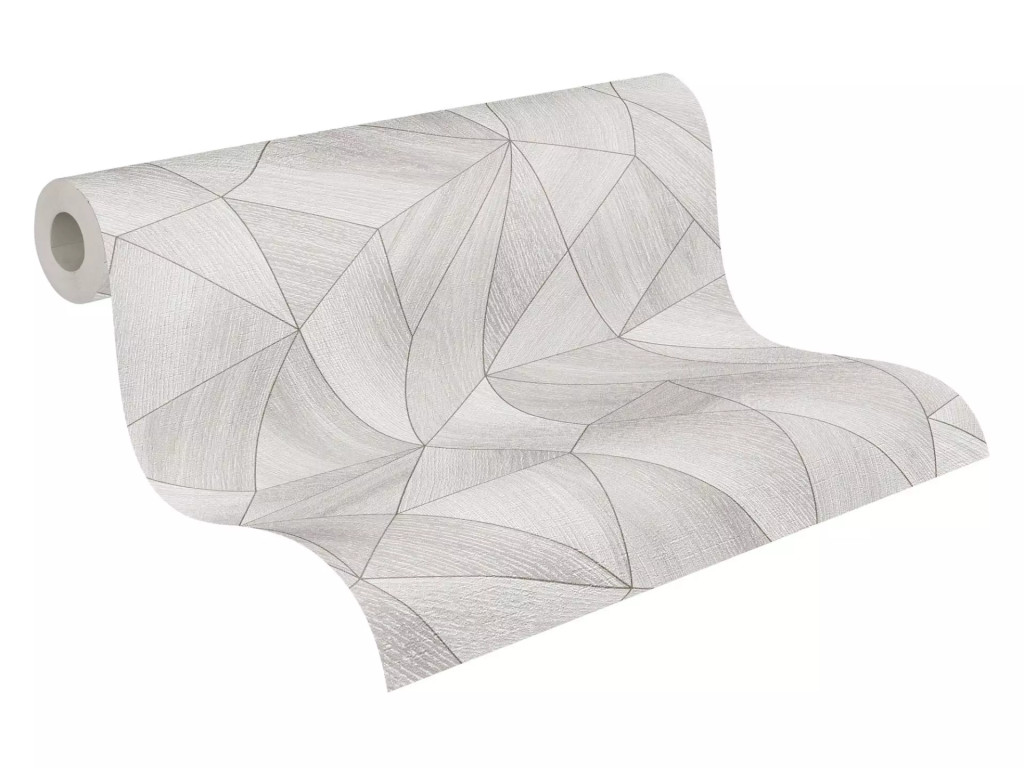 Polygon 3D design - Fémes élekkel kiemelt mértani testek szürkésfehér szürke és ezüst tónus tapéta
