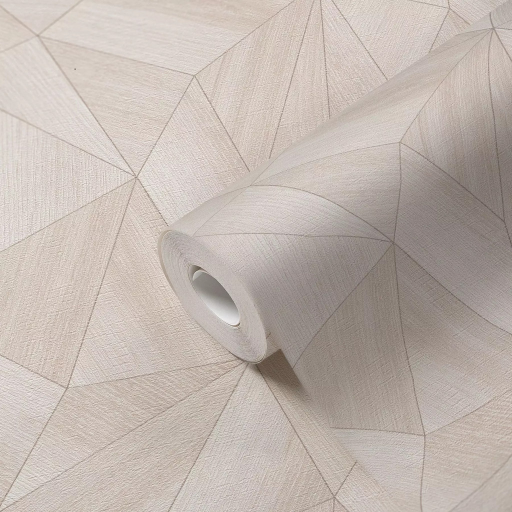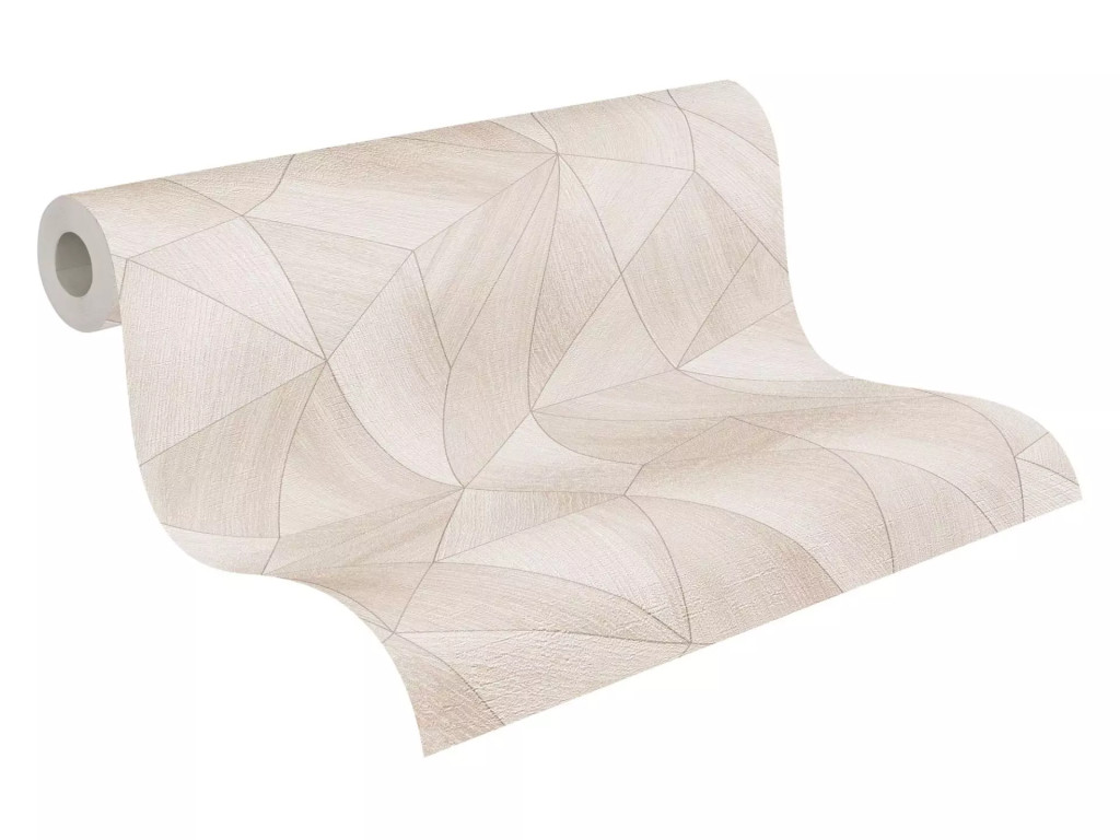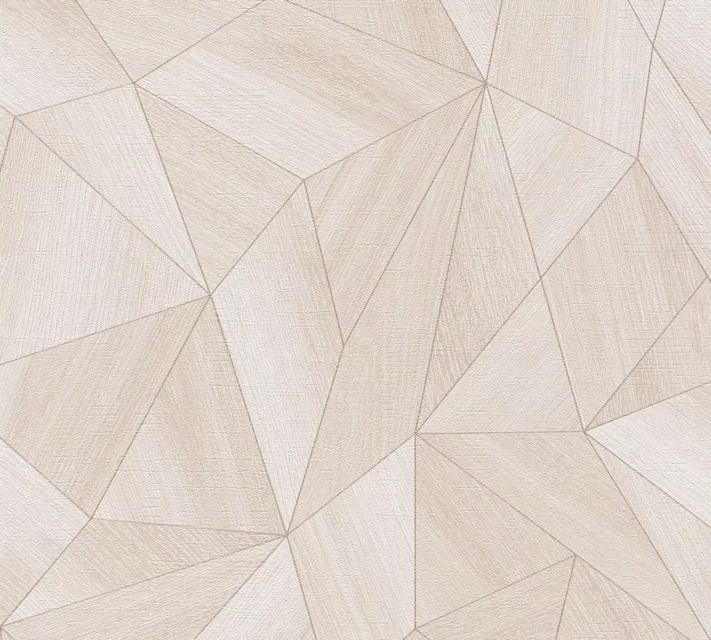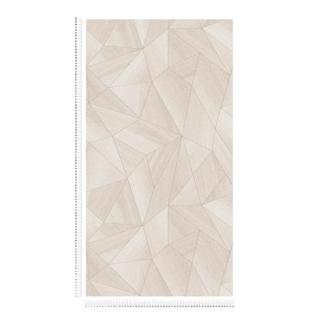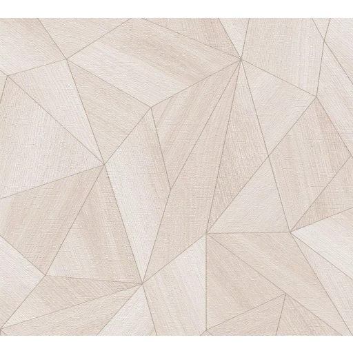 Polygon 3D design - Fémes élekkel kiemelt mértani testek krém bézs és arany tónus tapéta