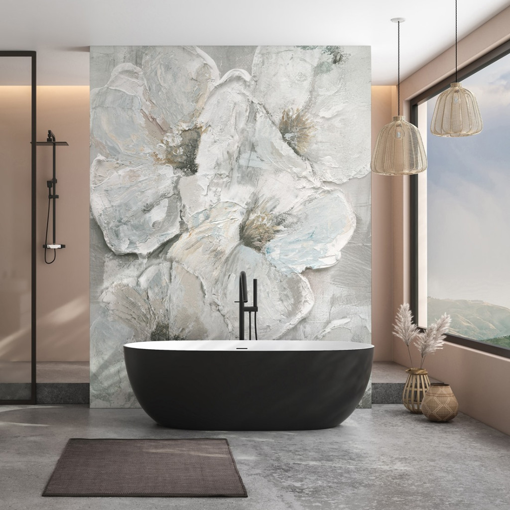 kontrasztot szúrnak a légiességbe. Helyezz elé matt fekete szabadon álló fürdőkádat