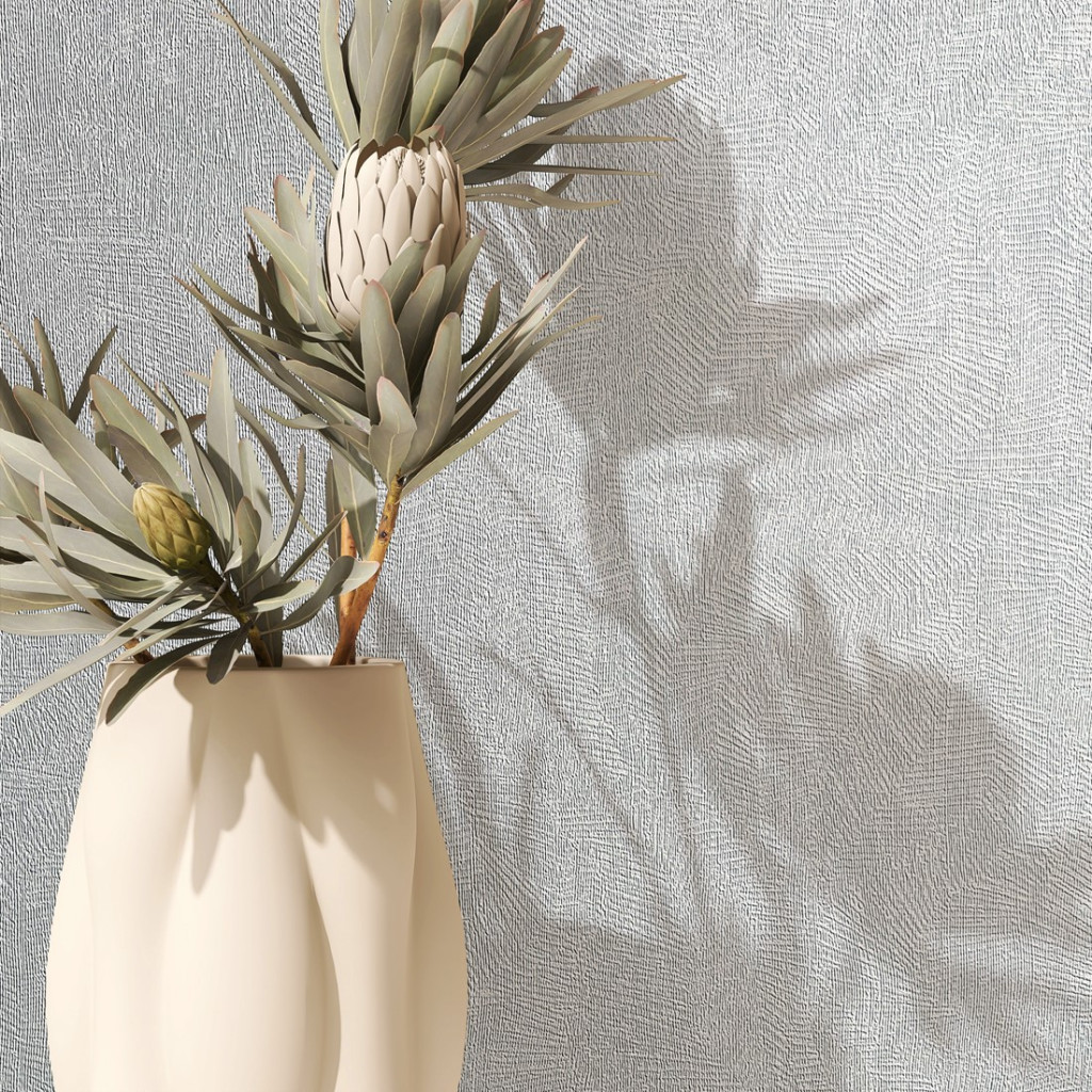 és a fal szinte platinaszövetté változik. Helyezz elé matt fekete acél állólámpát