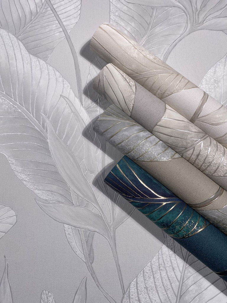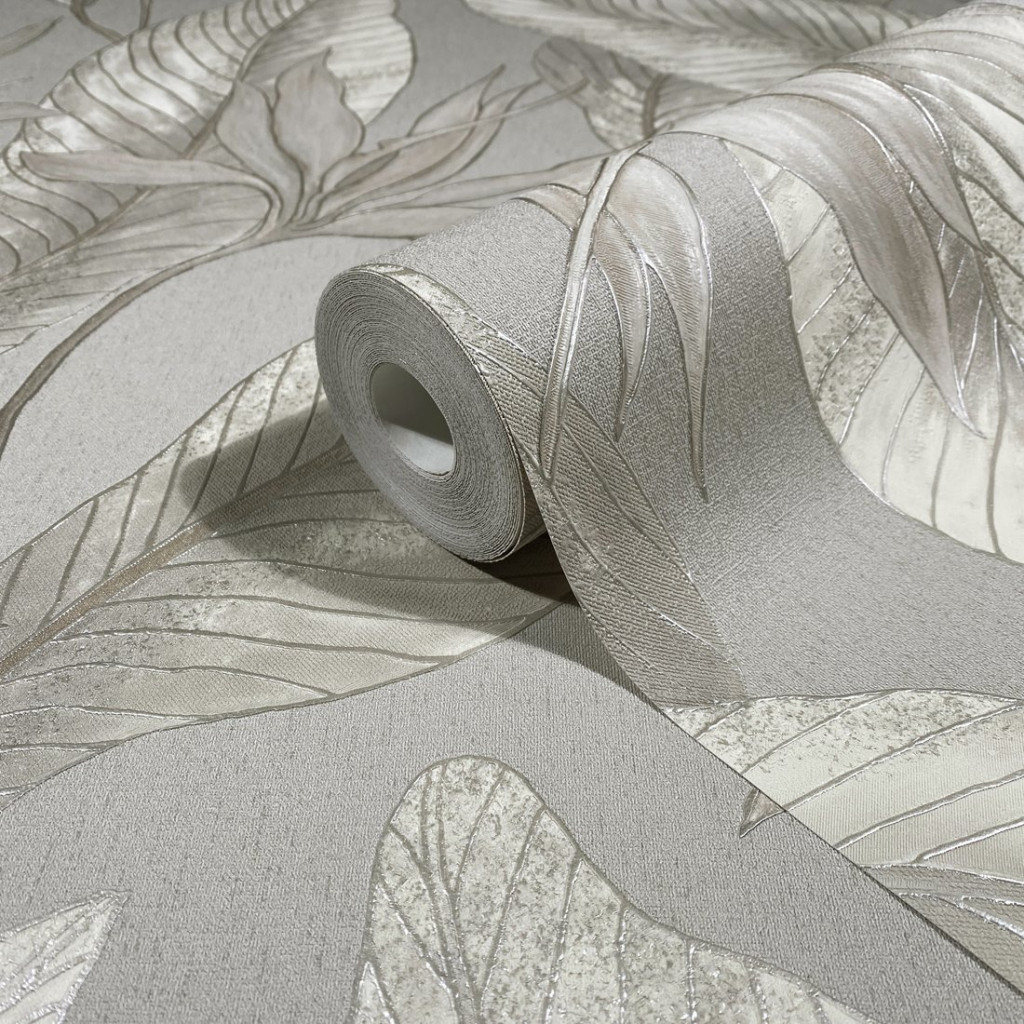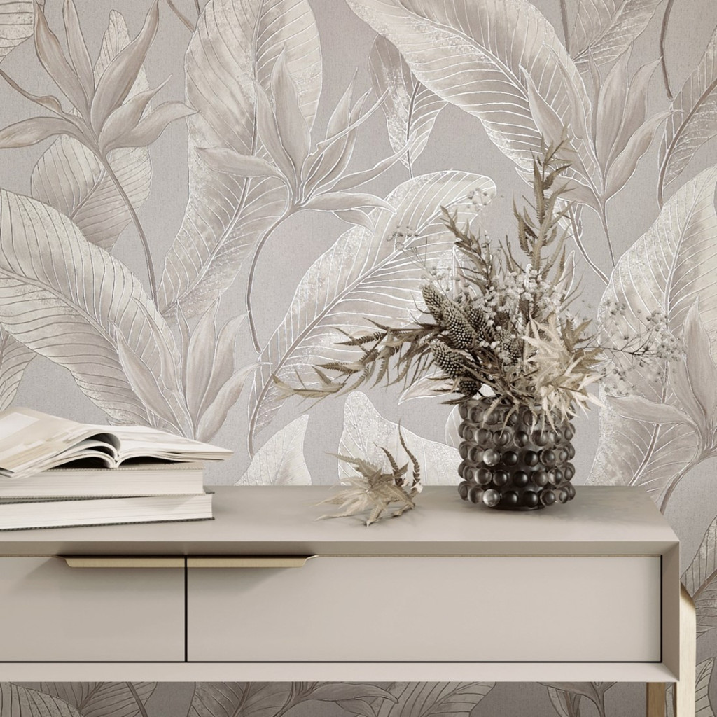 Tipp : Meleg taupe/szürke alapon lebegő ezüstös-homokbézs levelek