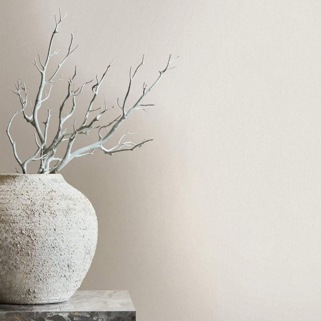 Tipp :Szőtt lenvászon textúrájú egyszínű tapéta halvány bézs/krémszürke árnyalatban