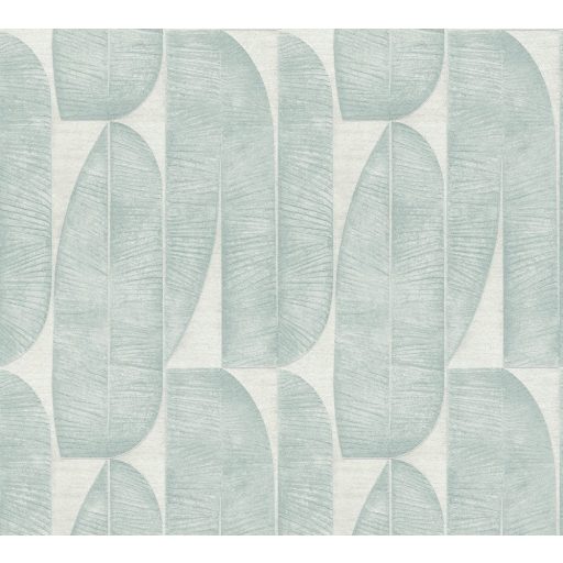 Absztrakt banánlevél mintázat sorokba rendezve 3D texturált felülettel krém és zöld/kékeszöld tónus tapéta