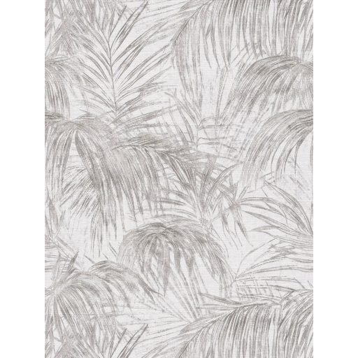 Pazar térbeli elhelyezkedésű vintage pálmalevél kompozíció törtfehér és szürke tónus finom mintafény tapéta