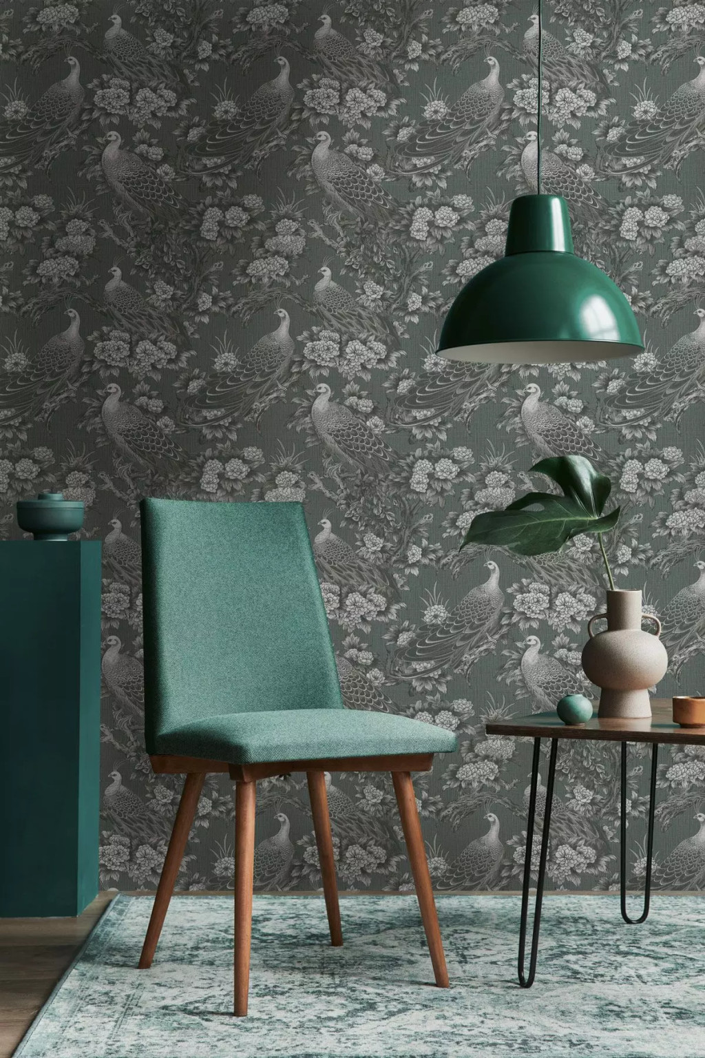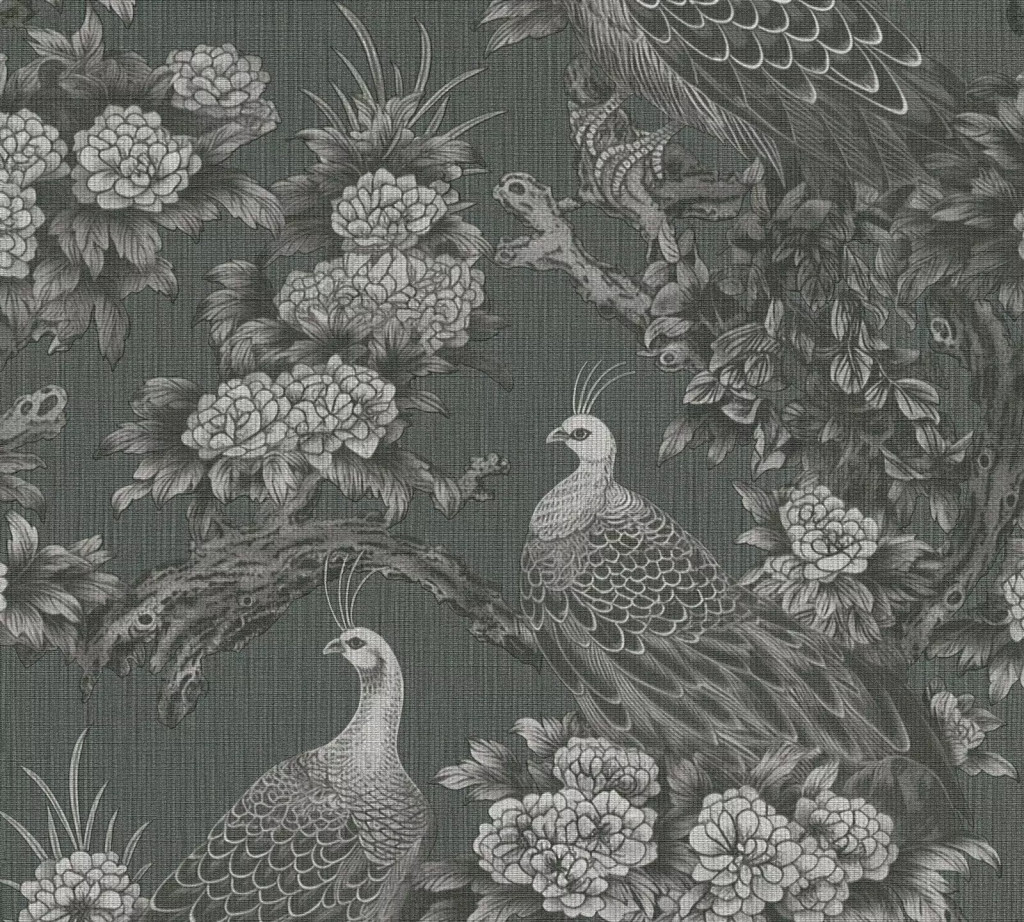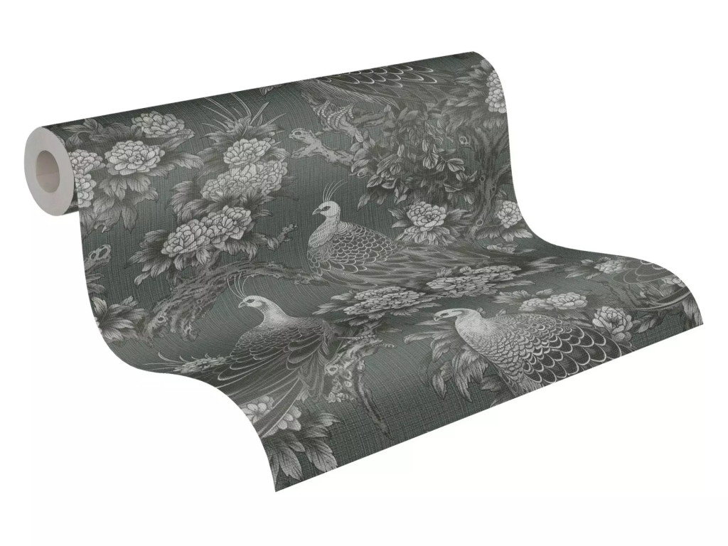 Tipp : A tapéta egy elegáns klasszikus ázsiai ihletésű mintázatú. A minta pávákból