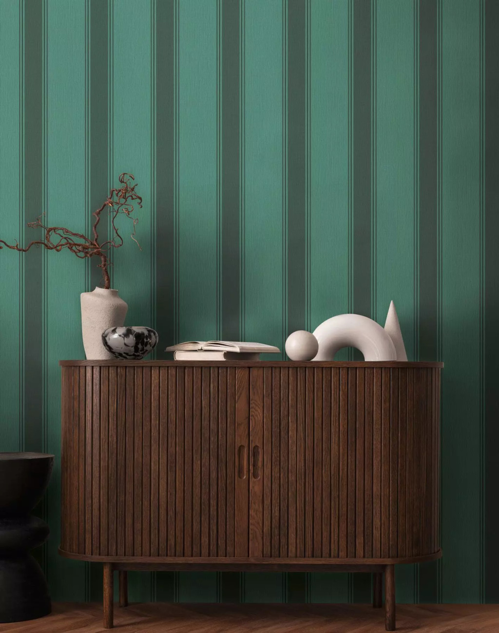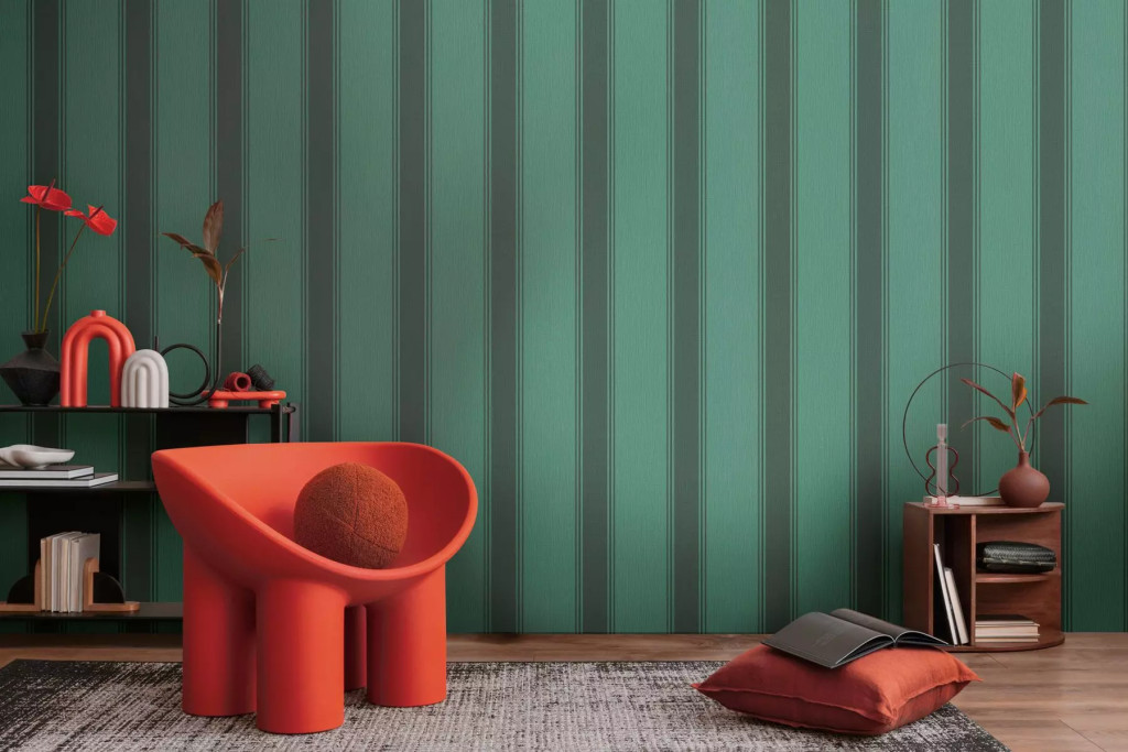 Tipp : A tapéta függőleges csíkos mintázatú sötétebb és világosabb smaragdzöld