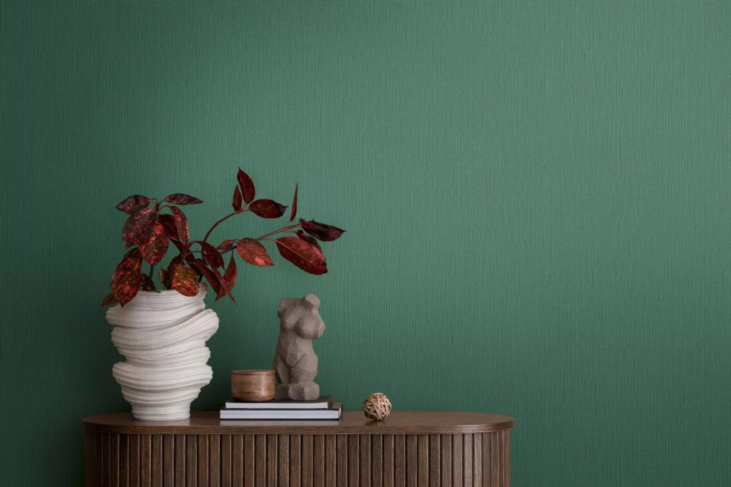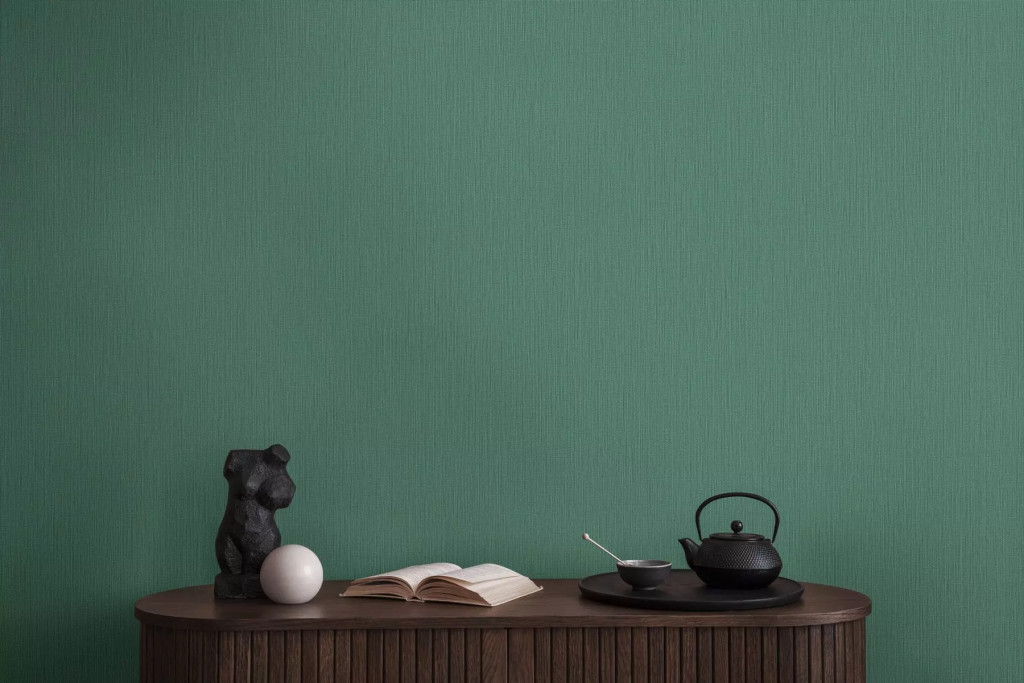 Strukturált szőtt hatású egyszínű természetes minta zöld tónus tapéta