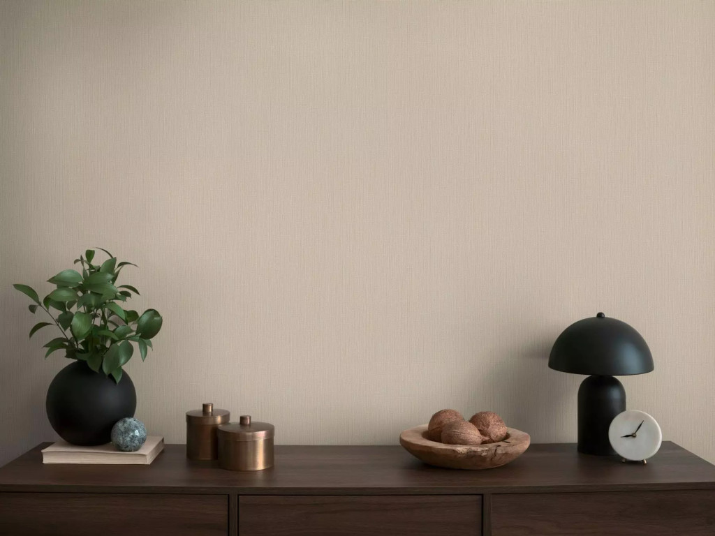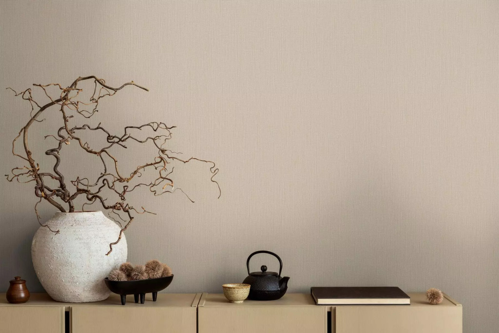 Strukturált szőtt hatású egyszínű természetes minta bézs/világosbarna tónus tapéta