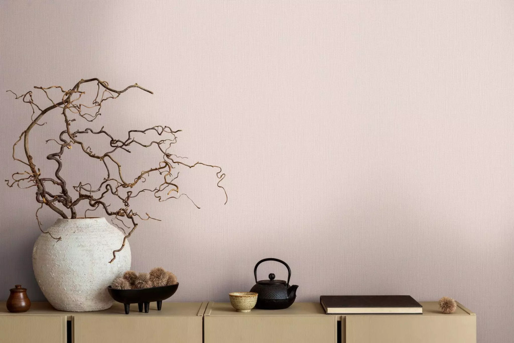 Strukturált szőtt hatású egyszínű természetes minta rózsaszín tónus tapéta