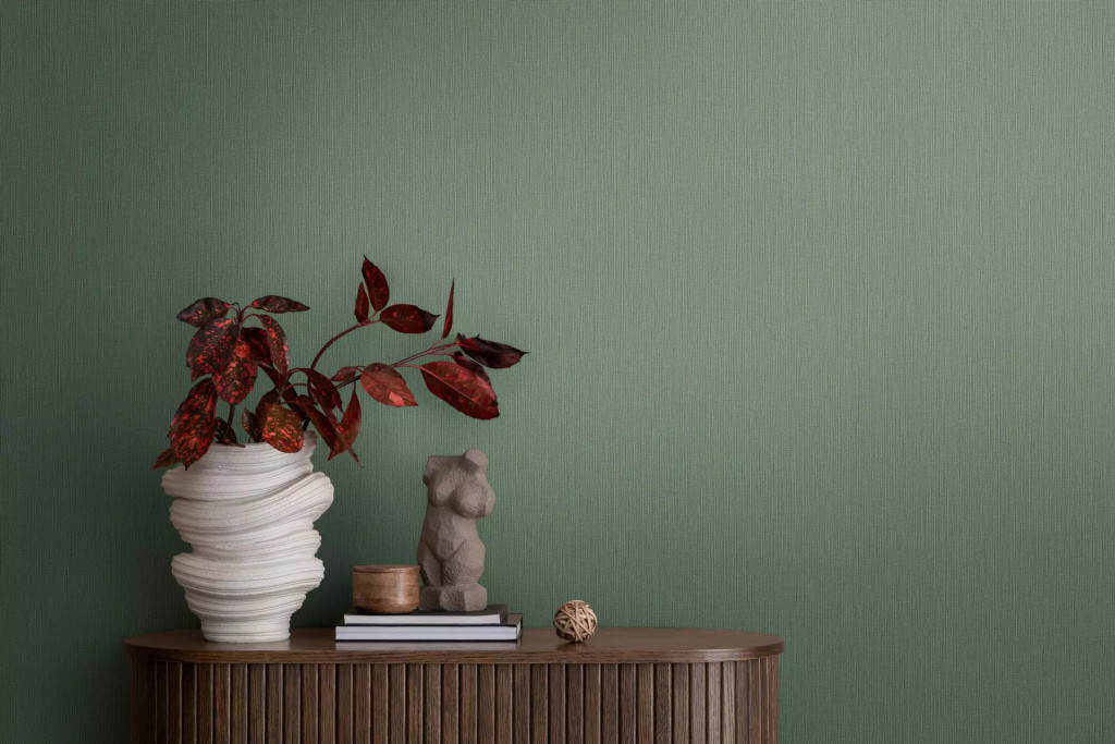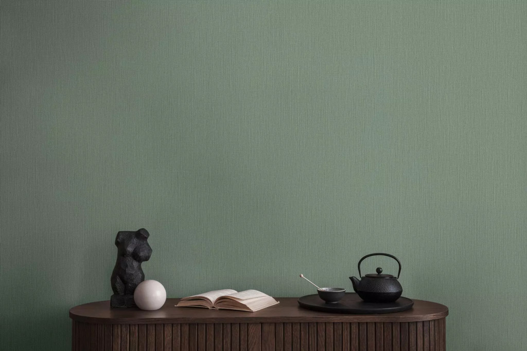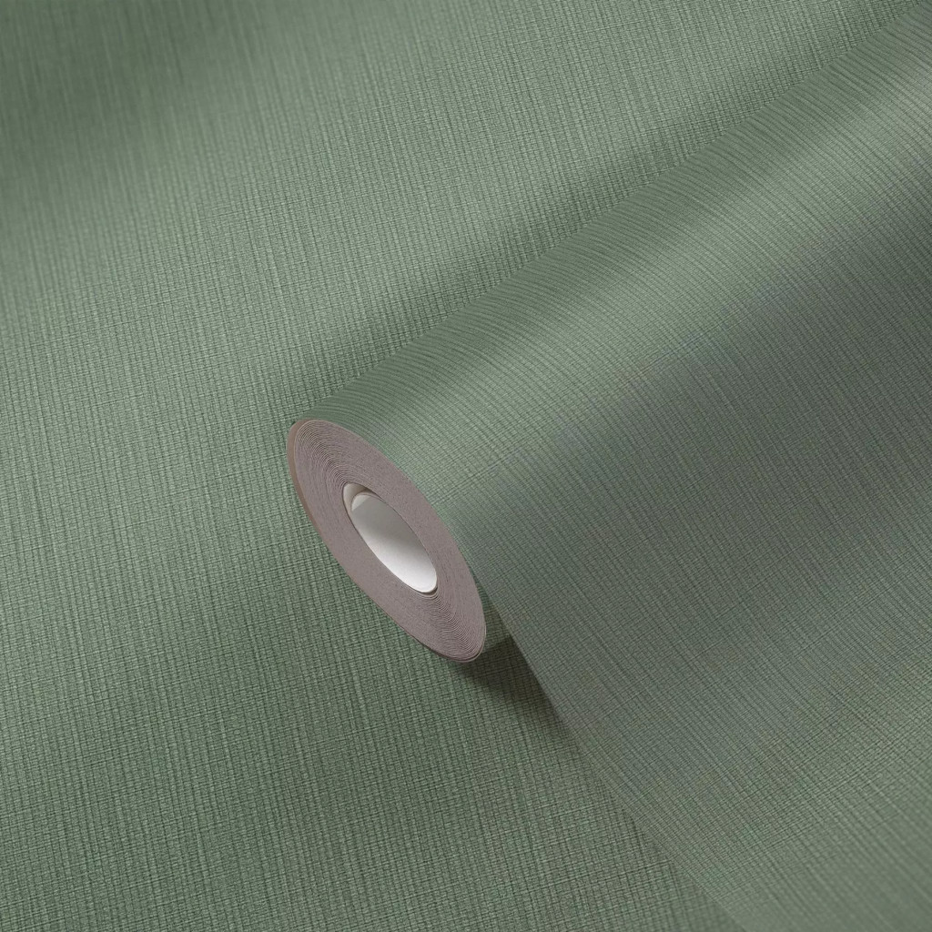 Strukturált szőtt hatású egyszínű természetes minta zöld tónus tapéta