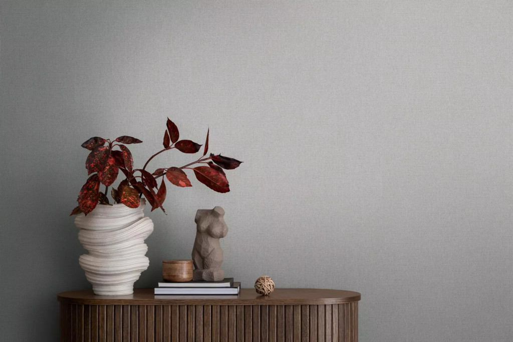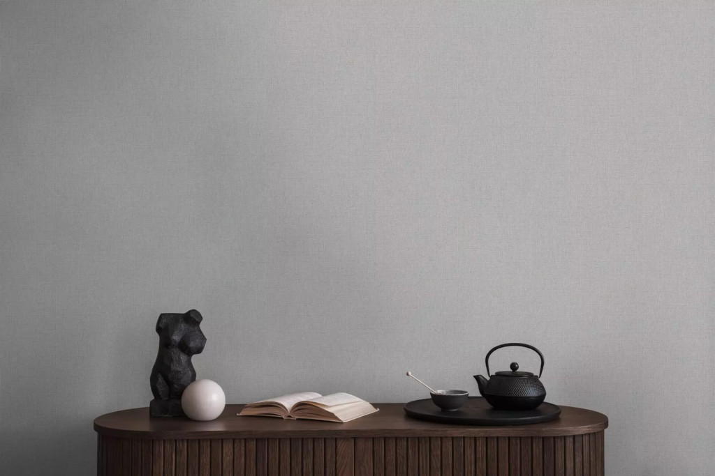 Finom struktúrájú egyszínű textil/vászon minta szürke tónus tapéta