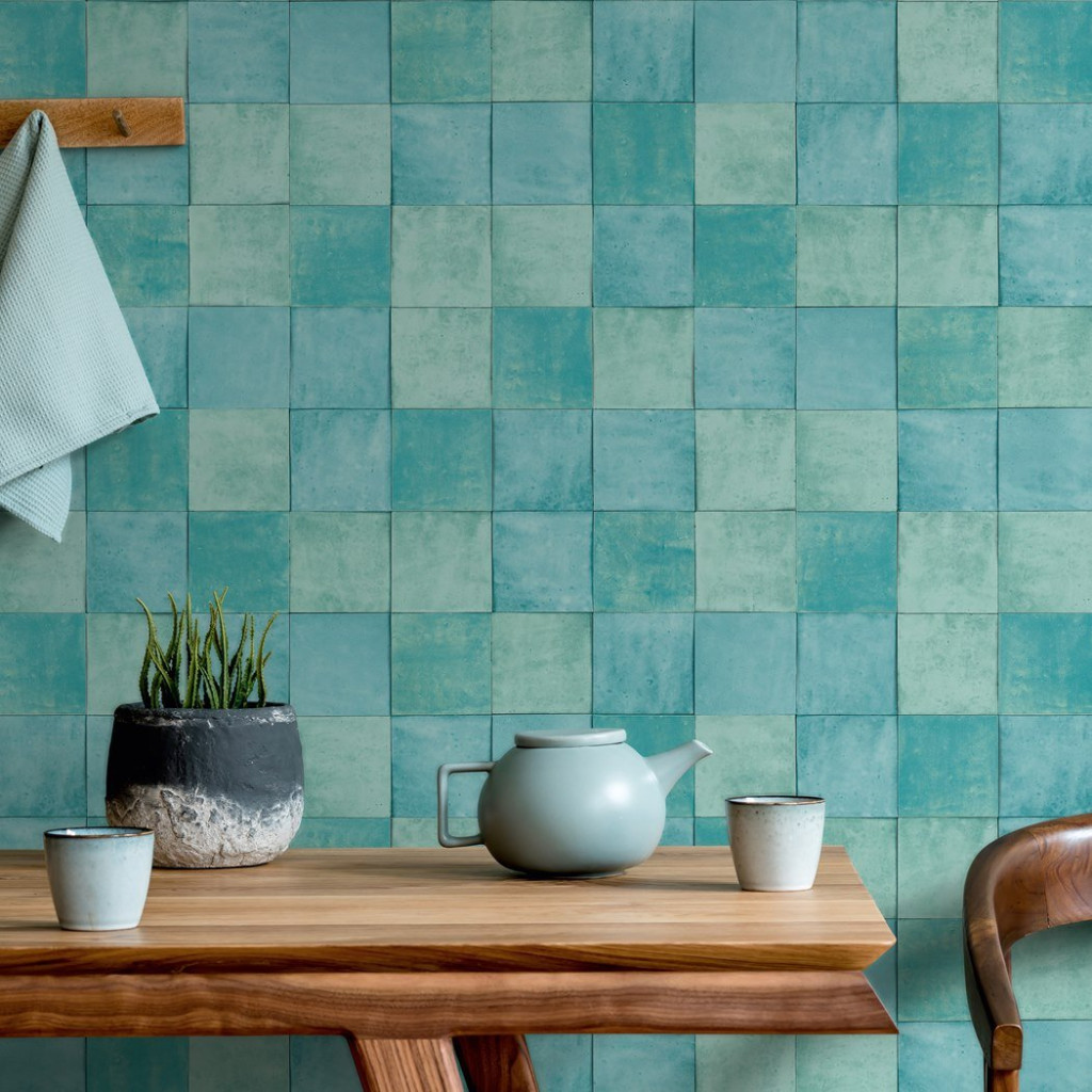 Tipp : Mélyebb kék és türkiz árnyalatok uralják a felületet, mintha a fal maga lenne