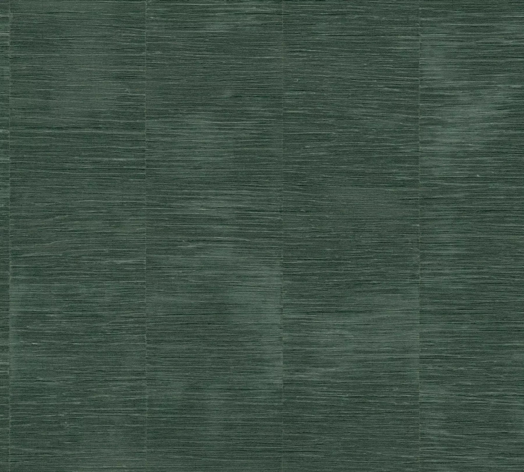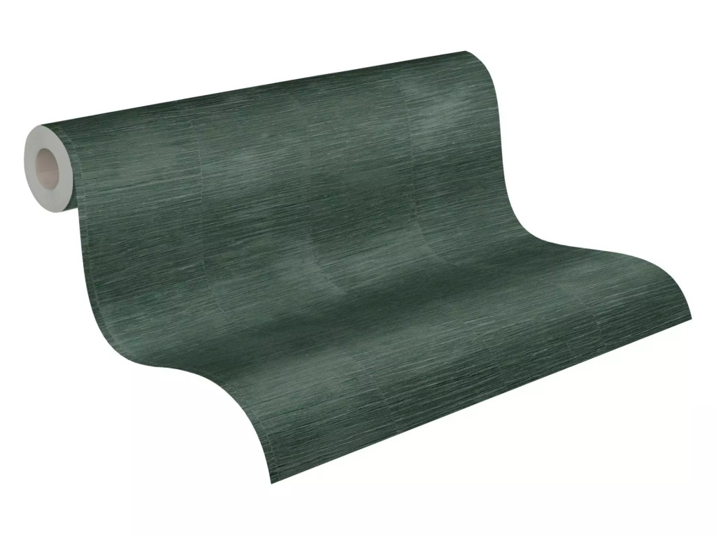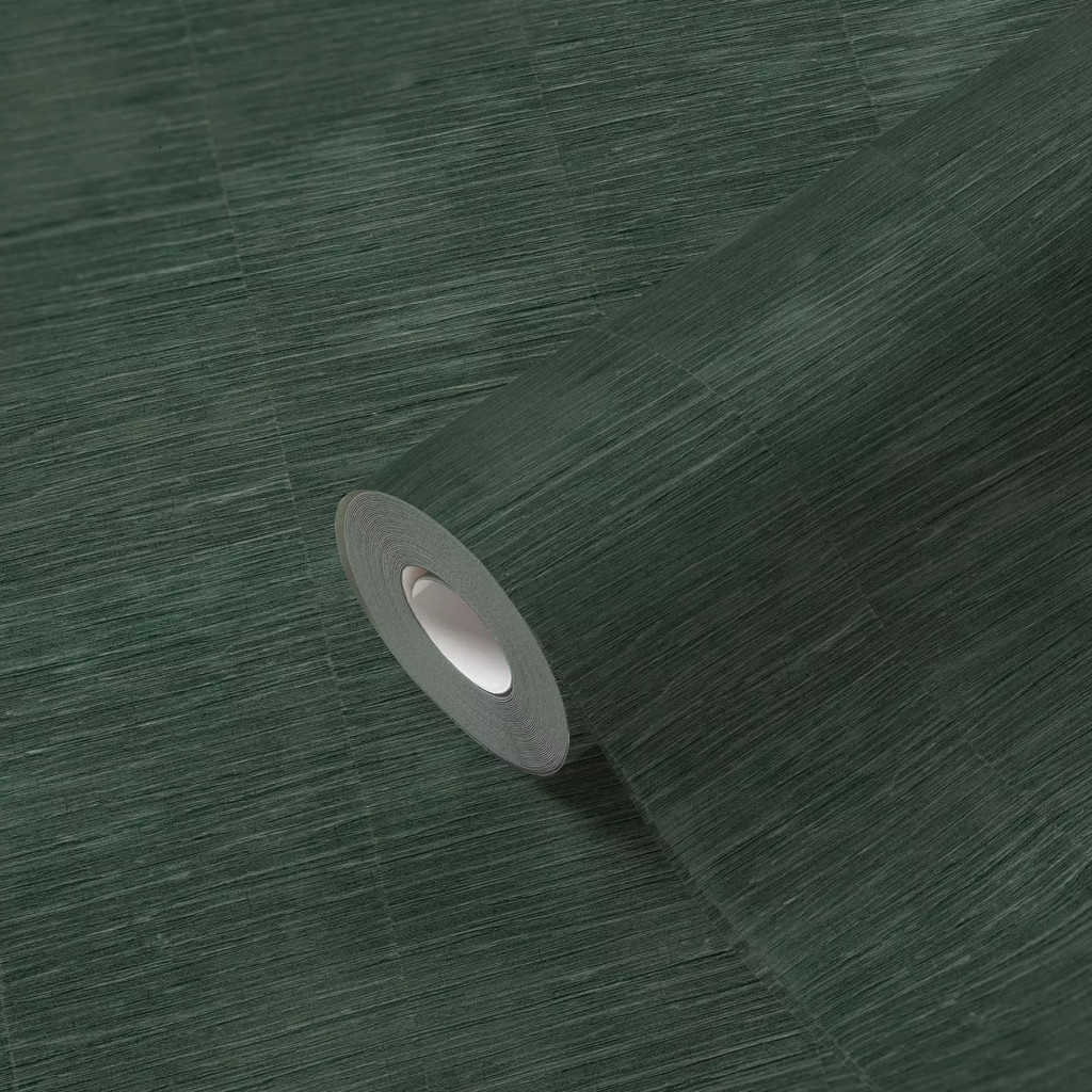Selyemszálak szövésére emlékeztető vízszintes vonalazású texturált minta zöld és sötétzöld tónus finom fény tapéta