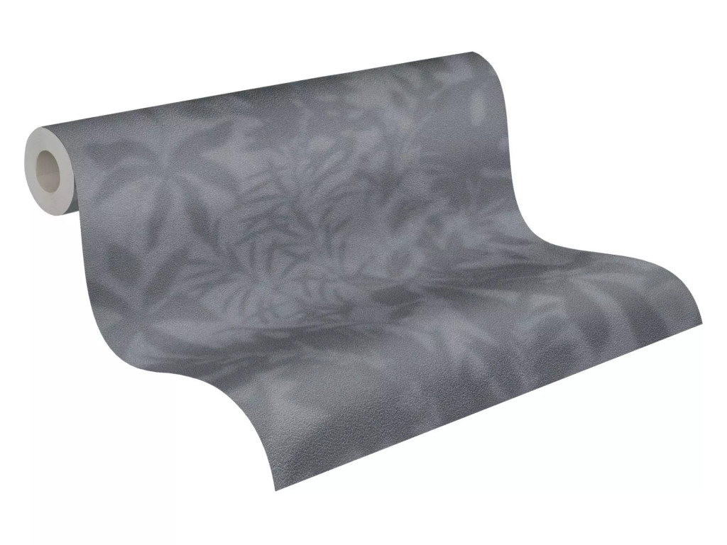Lágy márványos hatású könnyed felhőszerű levélminta szürke és sötétszürke/antracit tónus tapéta