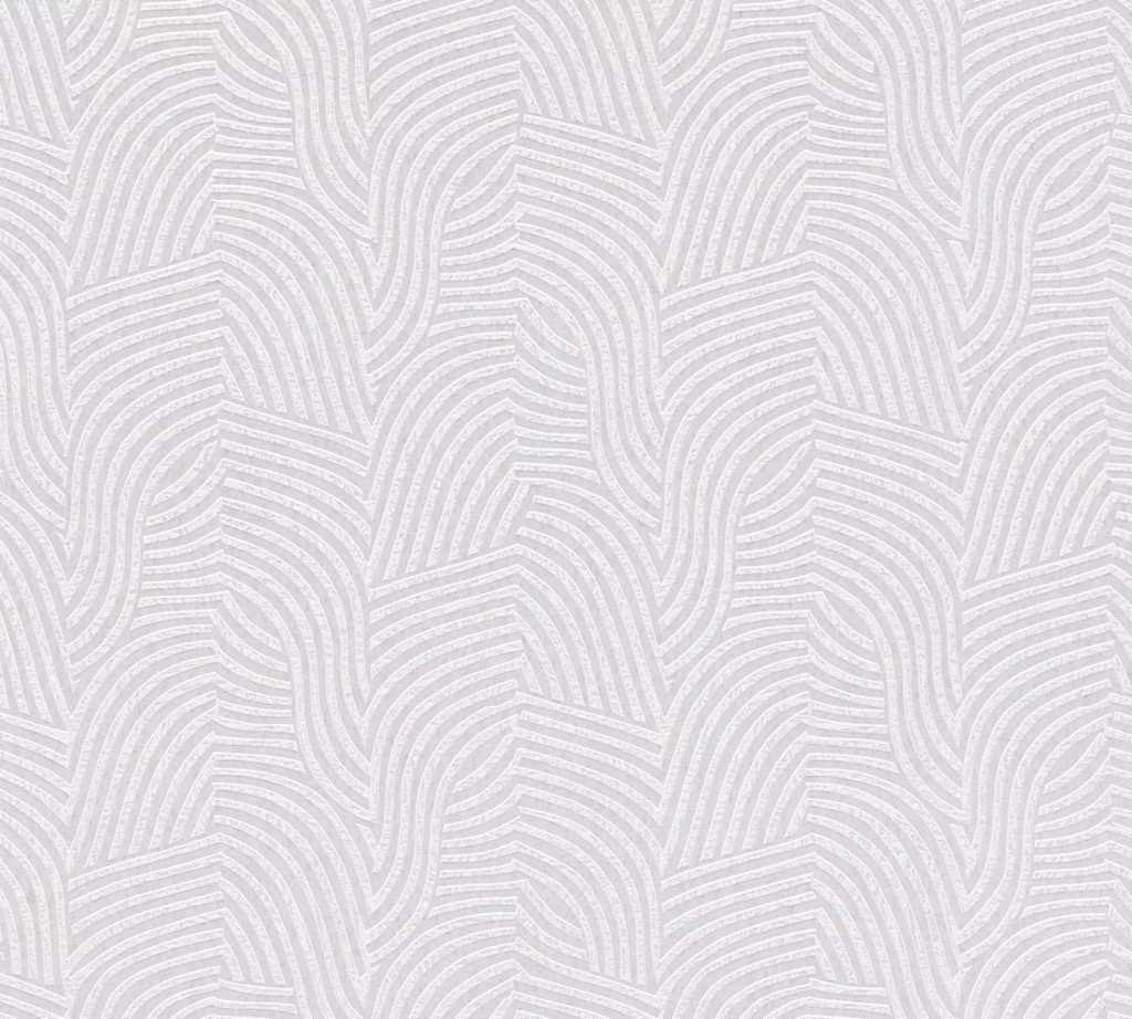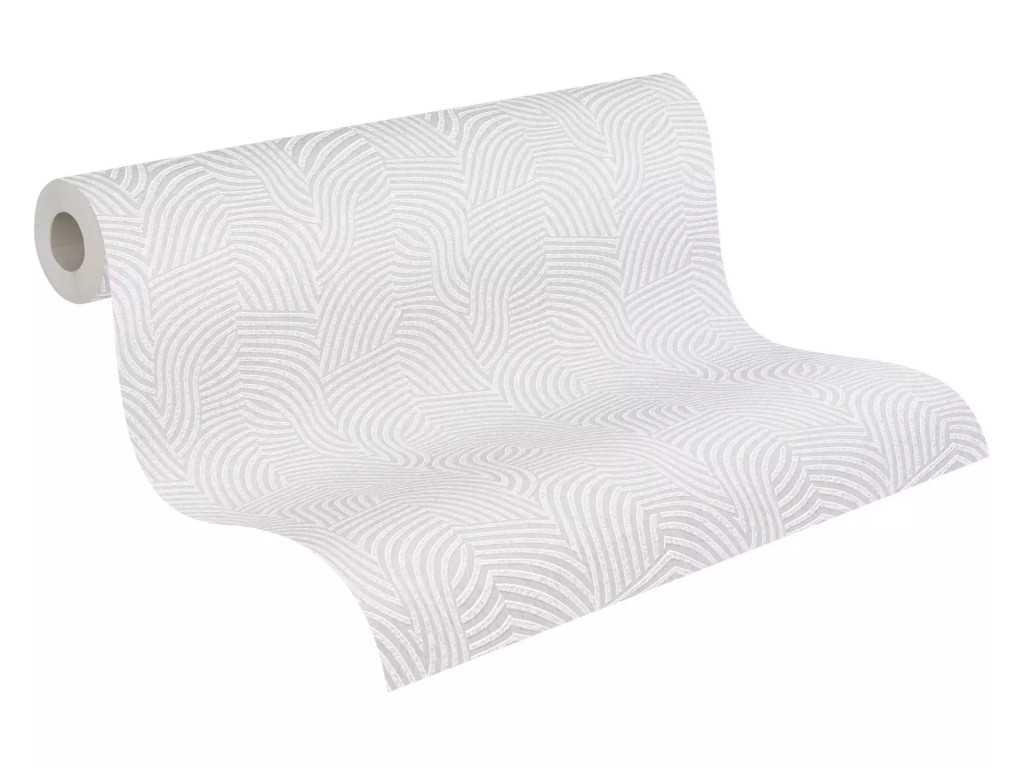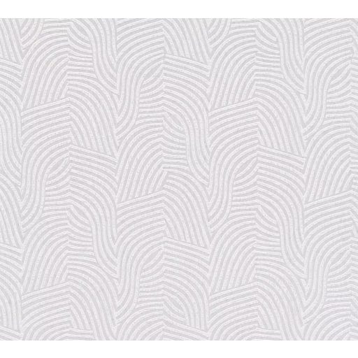 Íves hullámos vonalak alkotta art deco ihletésű minta fehér krémszürke és gyöngyház tónus finom fény tapéta